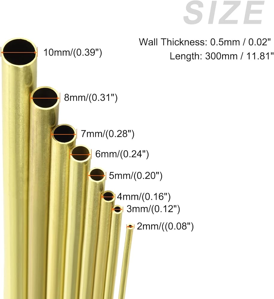 QUANTITY INCLUDED - 1 Pack x Brass Tube(2mm 3mm 4mm 5mm 6mm 7mm 8mm 10mm OD)