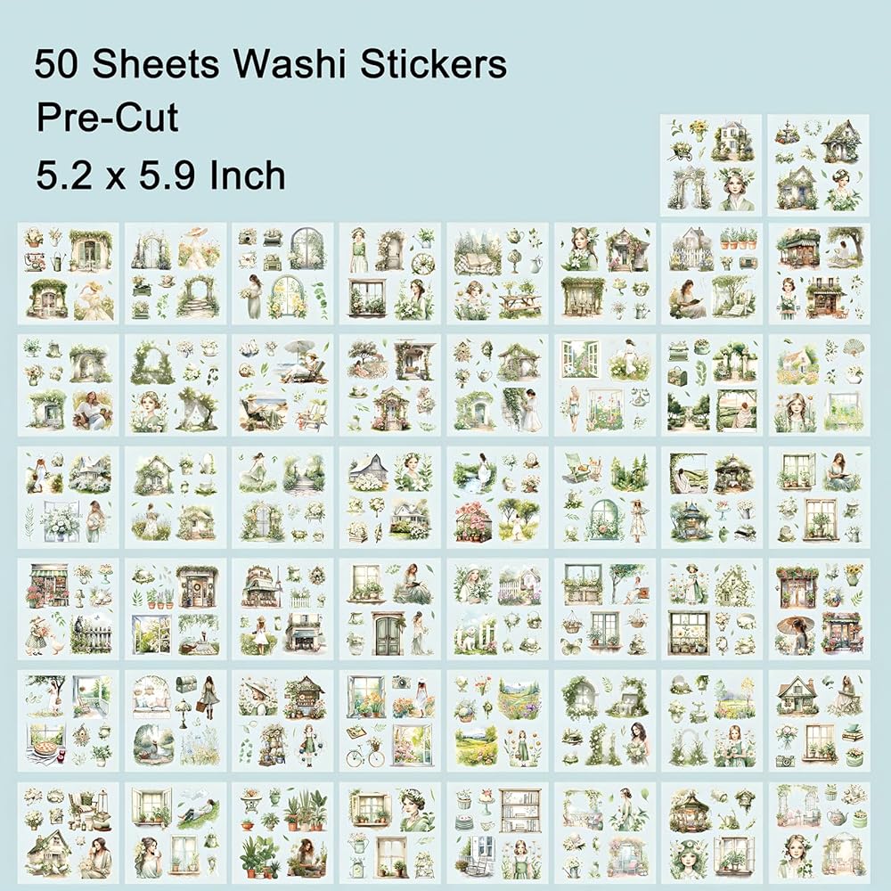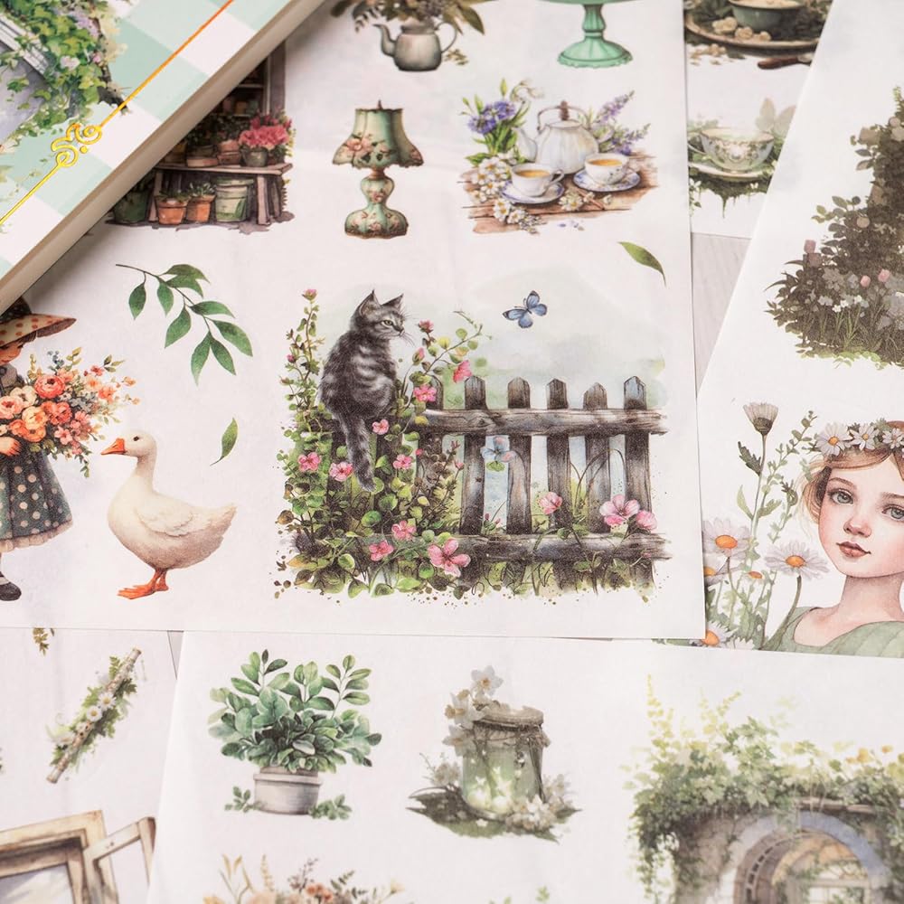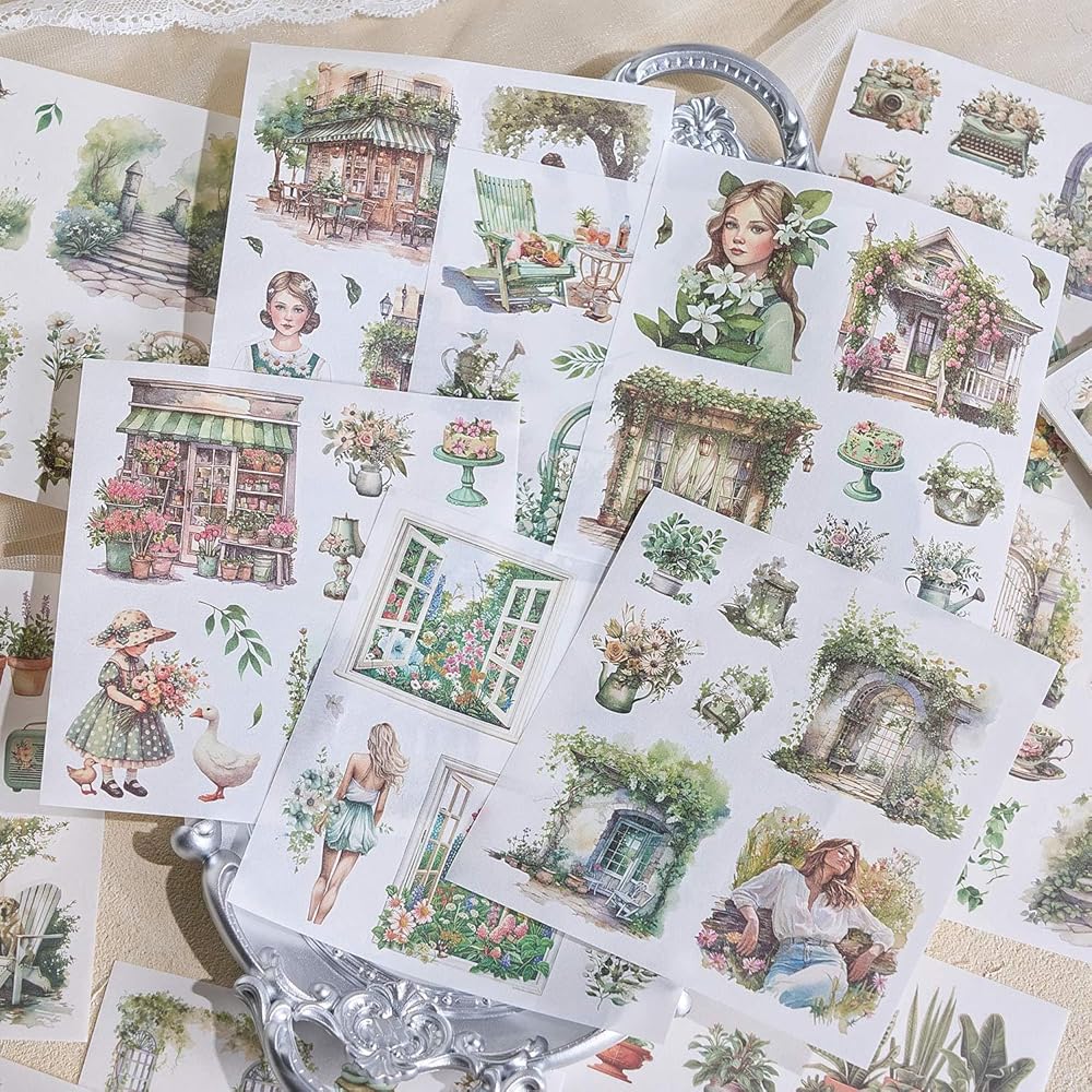 ملصقات مجلة الحديقة، 50 ورقة من كتاب ملصقات يوميات واشي غير المرغوب فيه، لوازم سجل القصاصات، سجل قصاصات بالألوان المائية للبالغين، حرفة فنية زخرفية خضراء