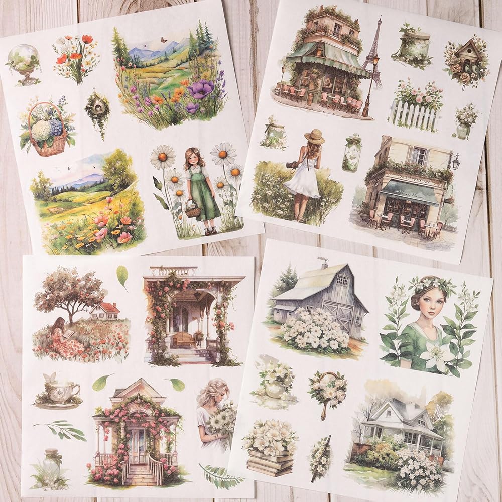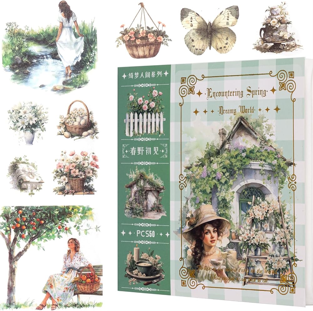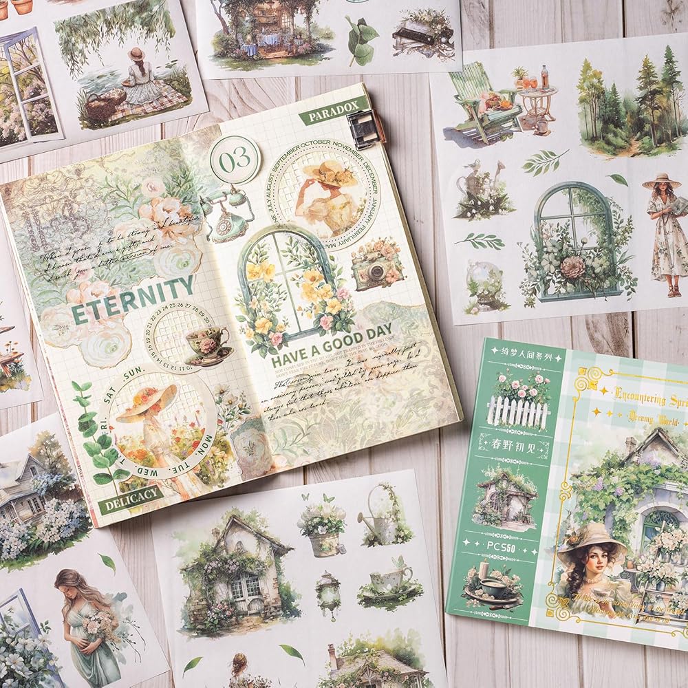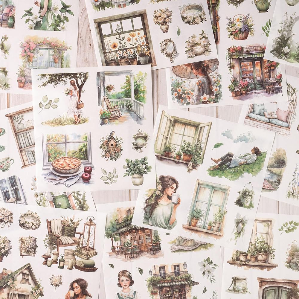 ملصقات مجلة الحديقة، 50 ورقة من كتاب ملصقات يوميات واشي غير المرغوب فيه، لوازم سجل القصاصات، سجل قصاصات بالألوان المائية للبالغين، حرفة فنية زخرفية خضراء