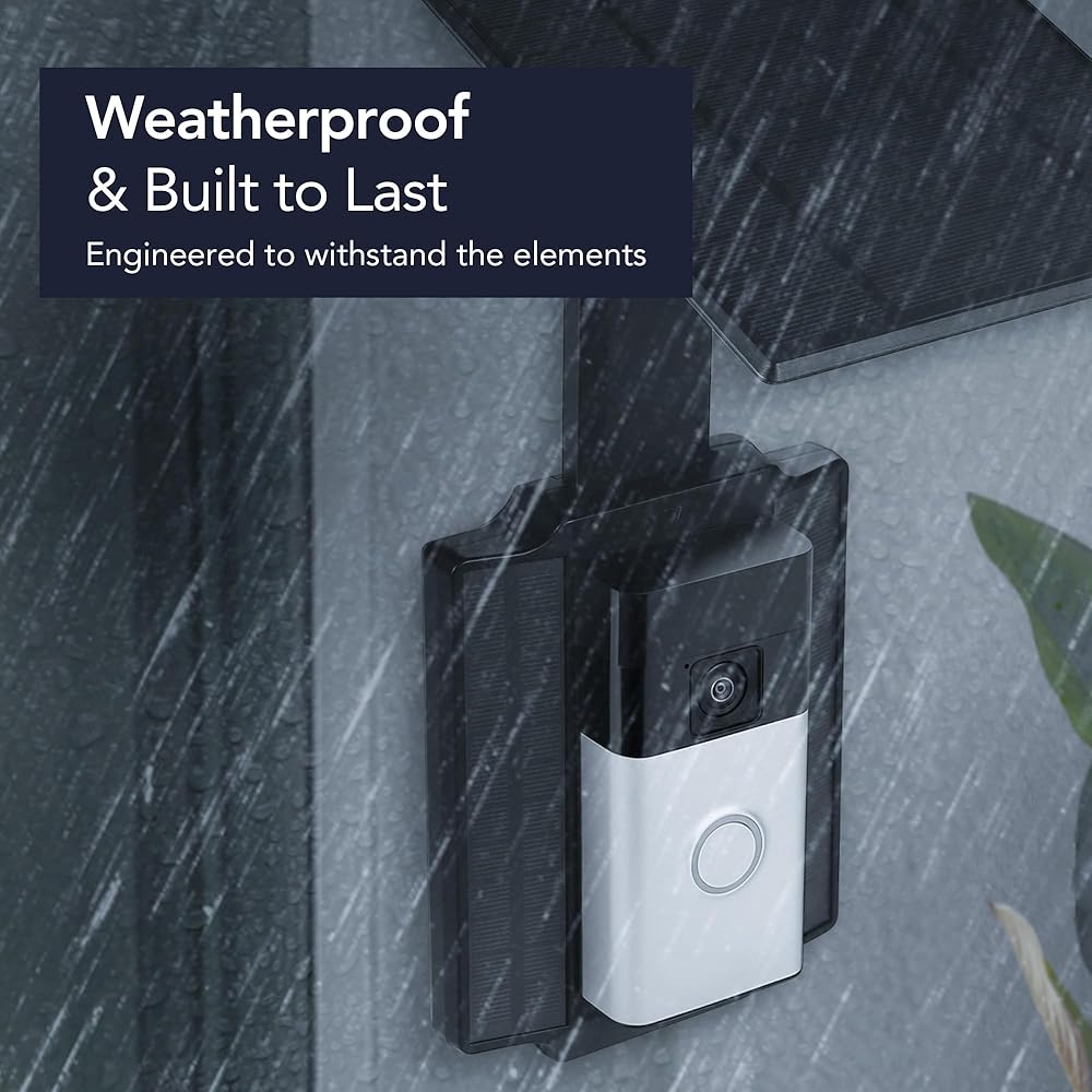 متين ومقاوم للطقس - تم تصميم شاحن اللوحة الشمسية هذا ليتحمل العناصر، وهو مثالي للاستخدام الخارجي في جميع الفصول. حافظ على شاحن الطاقة الشمسية Wyze and Ring Battery Doorbell الخاص بك يعمل في المطر أو الشمس، مما يضمن الحماية دون انقطاع.