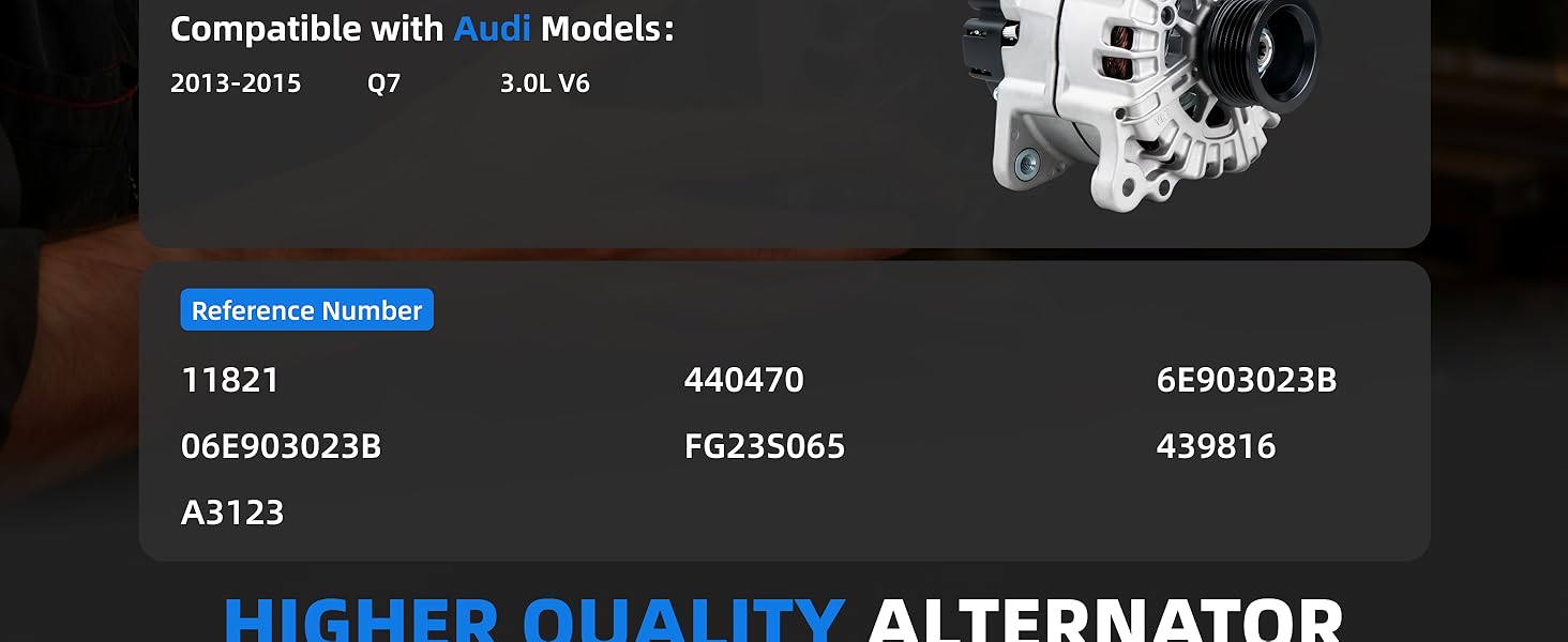 【ملاءمة تامة وتوافق واسع】: مولد بديل مباشر مناسب لـ (11821,06E903023B، A3123،440470، FG23S065،6E903023B، 439816). تحقق من تفاصيل سيارتك ورقم الجزء للحصول على ملاءمة مثالية وخالية من المتاعب