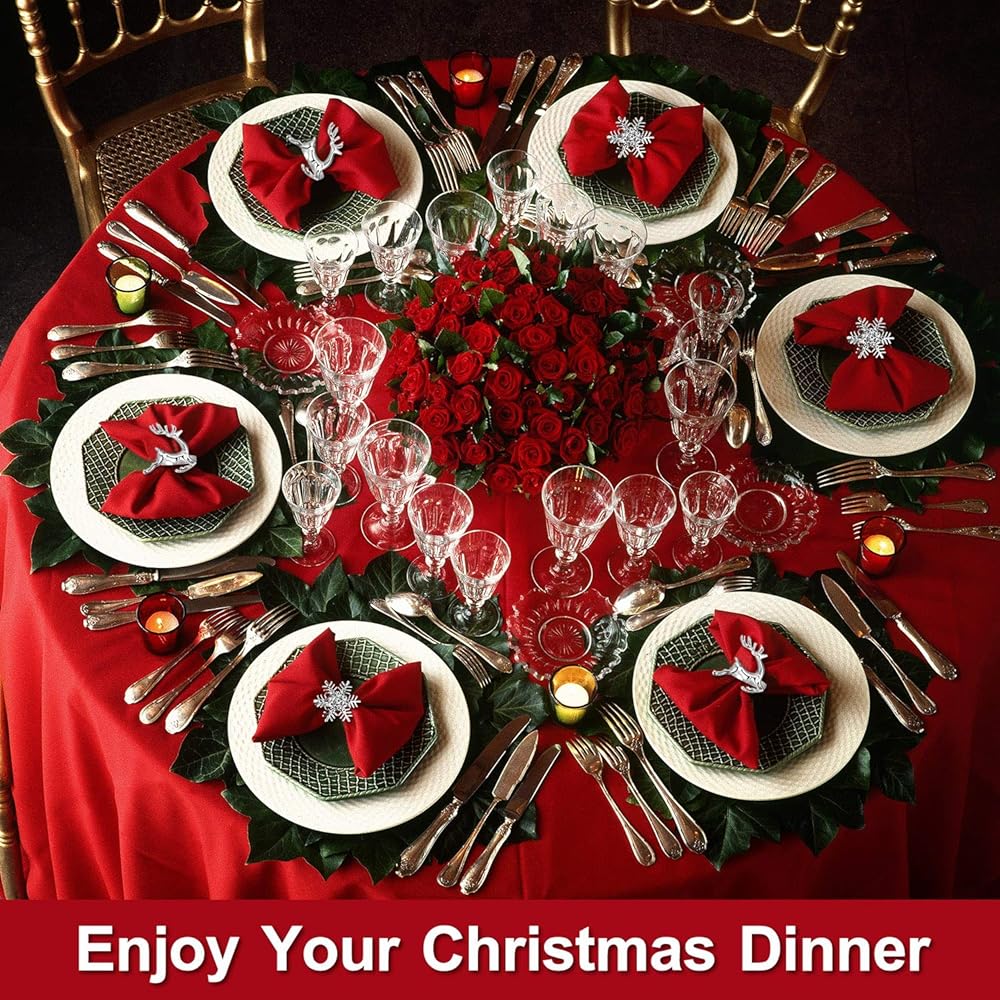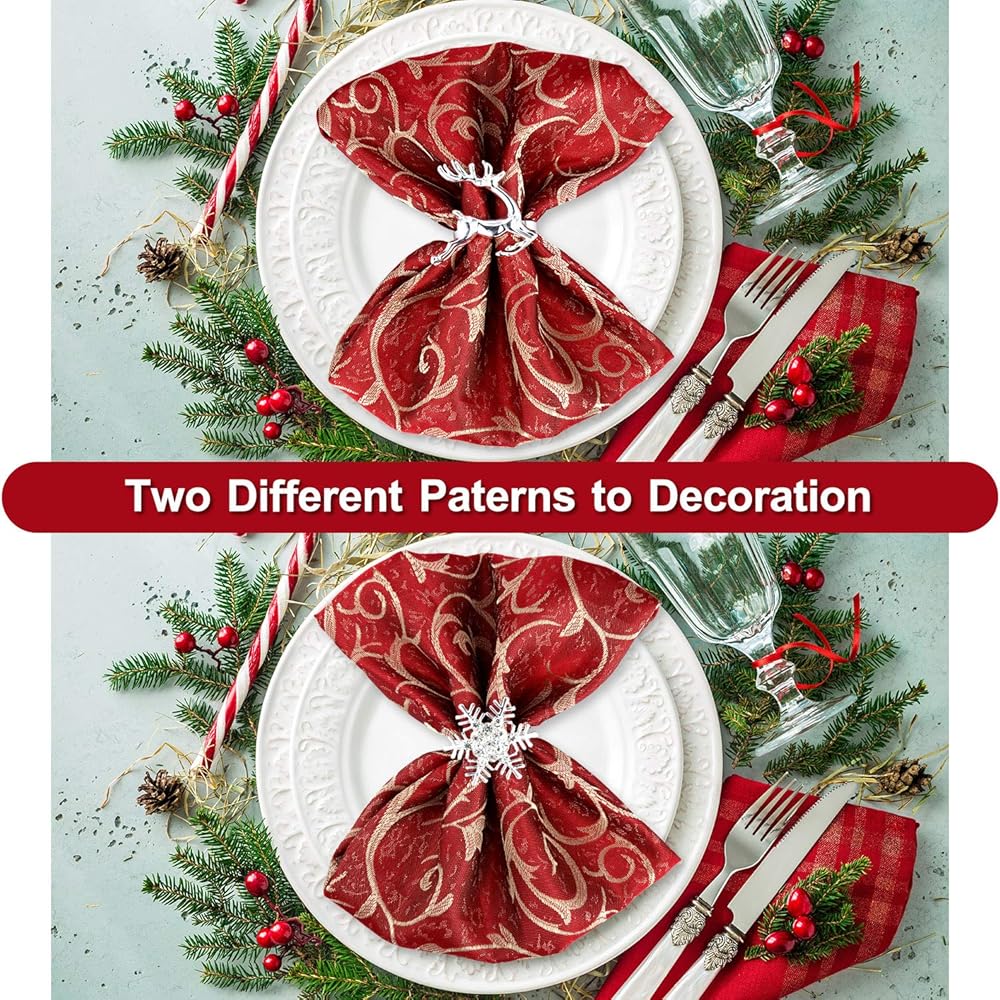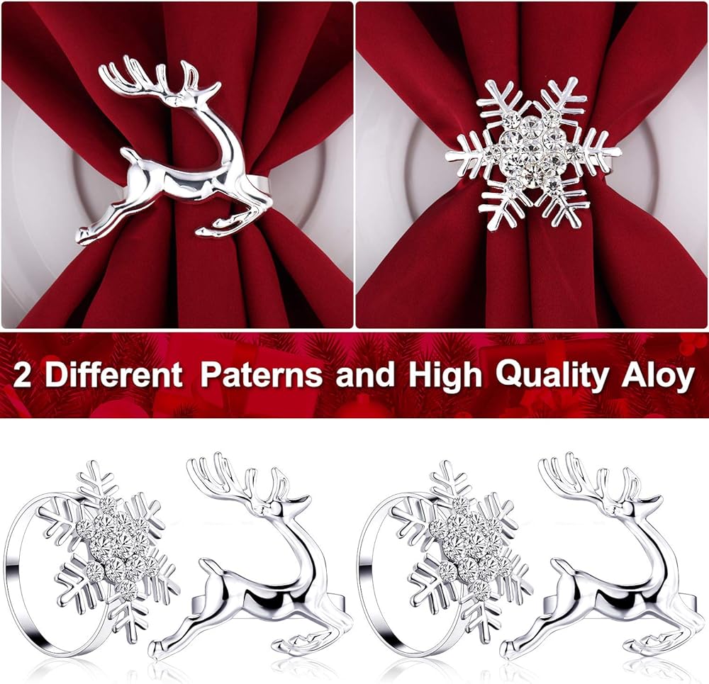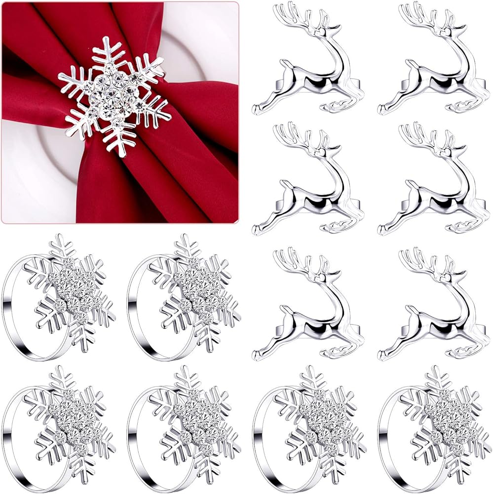 مجموعة من 12 قطعة من حلقات المناديل الورقية للكريسماس، 6 قطع من حلقات المناديل الأنيقة باللون الفضي و6 قطع من حلقات مناديل ورقية فضية من حجر الراين لحفلات الكريسماس وحفلات الزفاف وأعياد الميلاد.