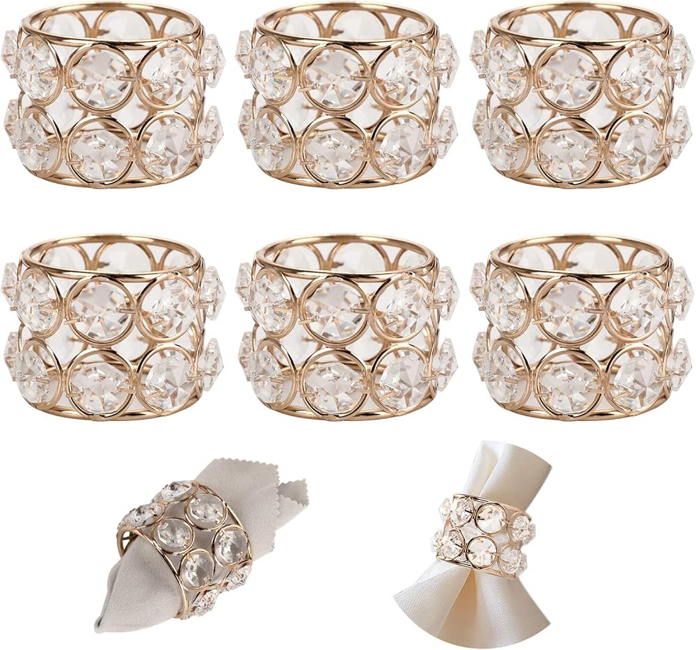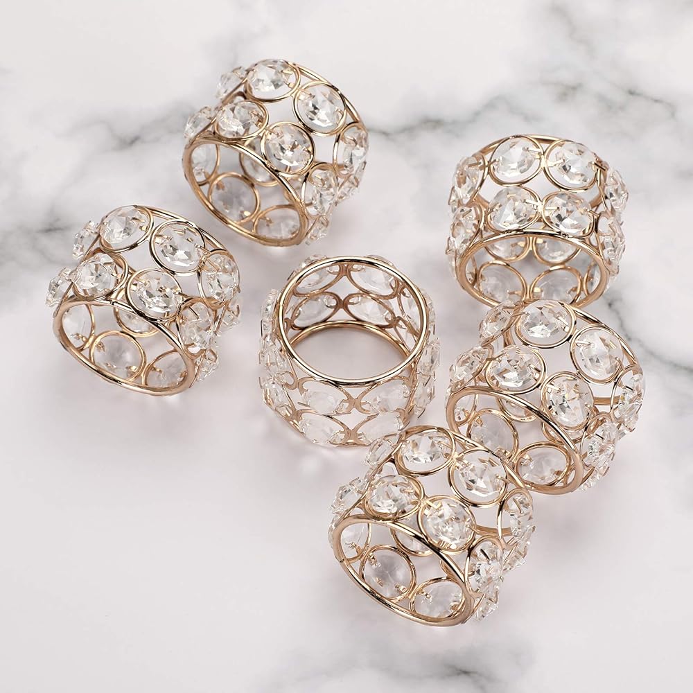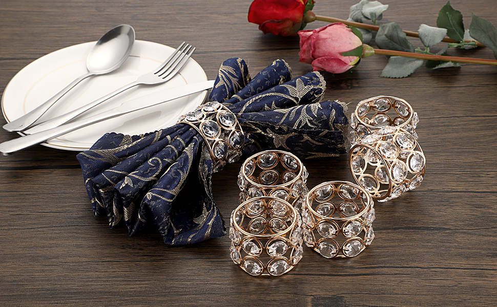 • تحتوي العبوة على 6 قطع من حلقات المناديل المصنوعة من الخرز الكريستالي مع سلك معدني فقط، هدية رائعة وفاخرة لديكور المنزل لكل من يستمتع بطريقة رائعة على الطاولة.