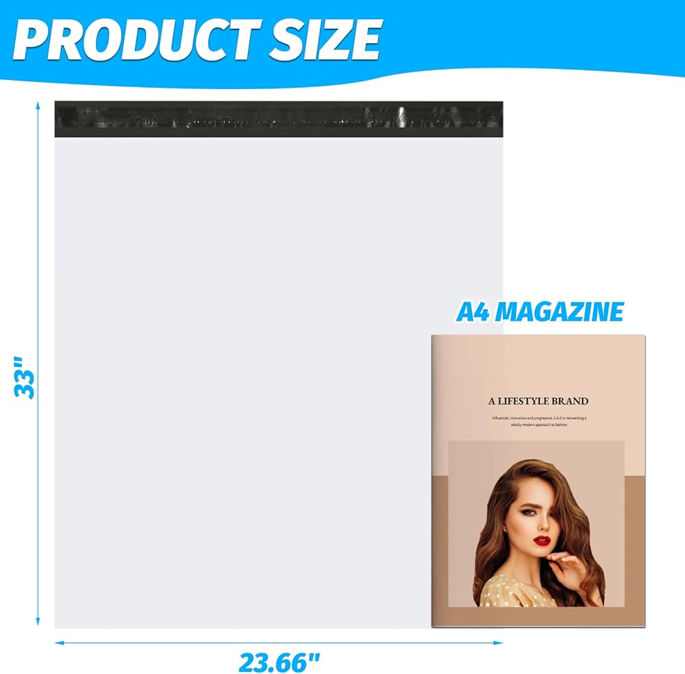 أكياس بريد كبيرة من البوليستر: مصممة لاستيعاب المنتجات كبيرة الحجم بسهولة، يبلغ مقاس حقائب البريد هذه 23 × 33 بوصة، مما يوفر مساحة واسعة لشحن العناصر الكبيرة مثل الملابس والبطانيات والإكسسوارات والمزيد مع ضمان عرض تقديمي احترافي.