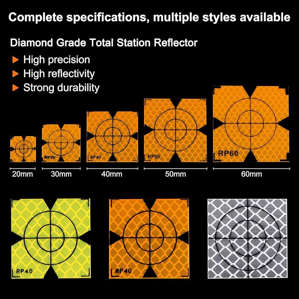- الحجم - أهداف المسح العاكس من الدرجة الماسية 40 مم × 40 مم للمحطات الإجمالية