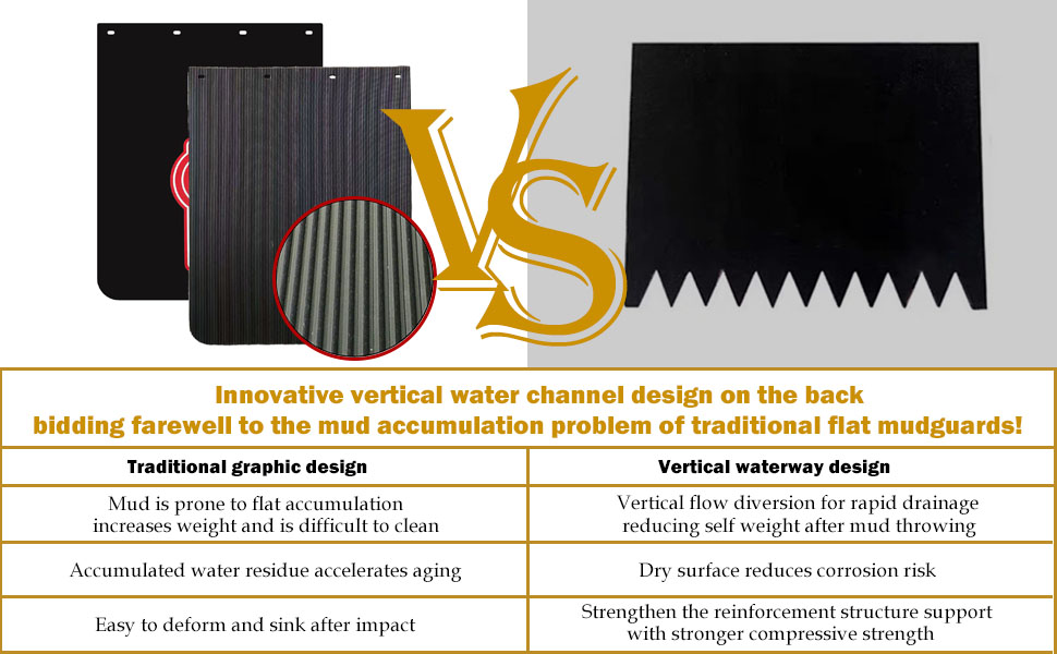 • الوظيفة: تمنع اللوحات الطينية الحجارة والطين والماء والثلج والغبار وغيرها من الحطام من التناثر على المركبات خلفك، مما يقلل من خطر الحوادث