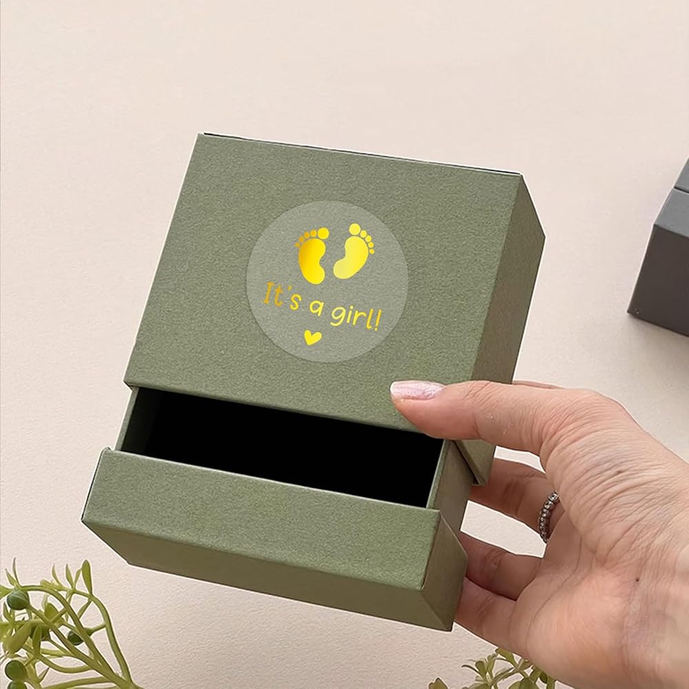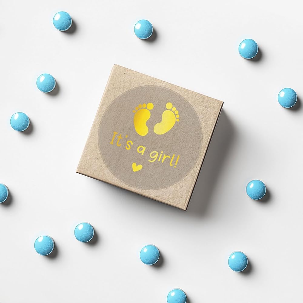 Celebrate the joyful arrival of a baby girl with our elegant "It's a Girl" Rose Gold Foil Stickers! Perfect for gender reveal parties, baby showers, gift packaging, invitations, and party favors. Each round sticker measures 1.6 inches and features a premium rose gold foil print that adds a touch of elegance to any celebration. With 100 stickers in each pack, you'll have plenty to decorate and share your excitement. These easy-to-peel stickers adhere securely to envelopes, candy bags, jars, and decorations, making them a versatile and stylish choice for your special event.