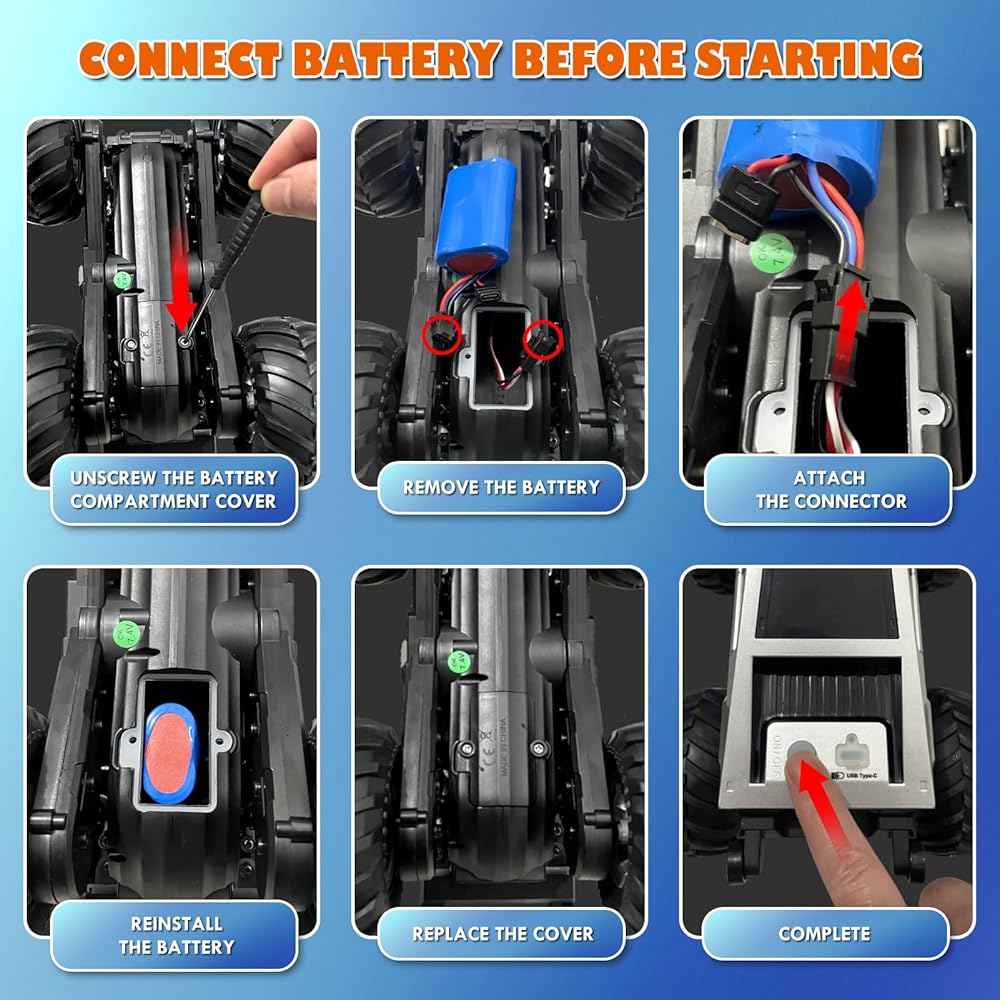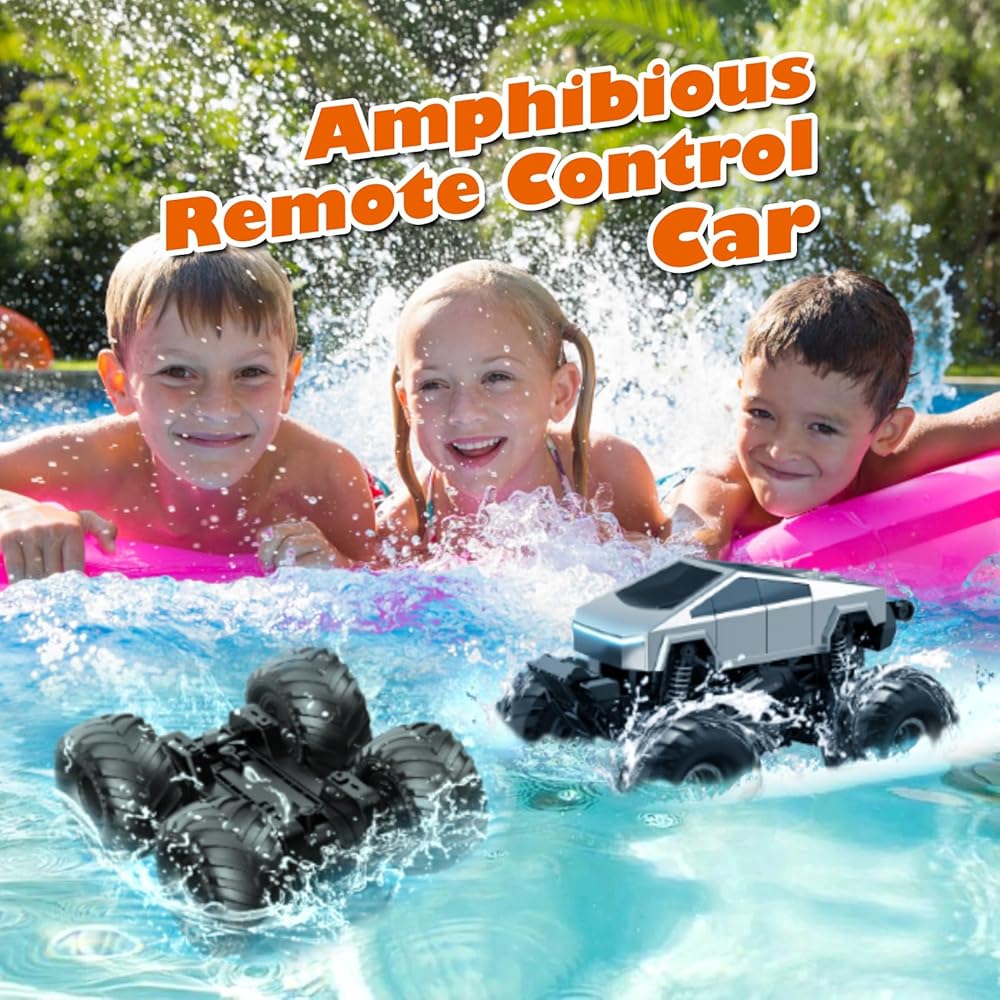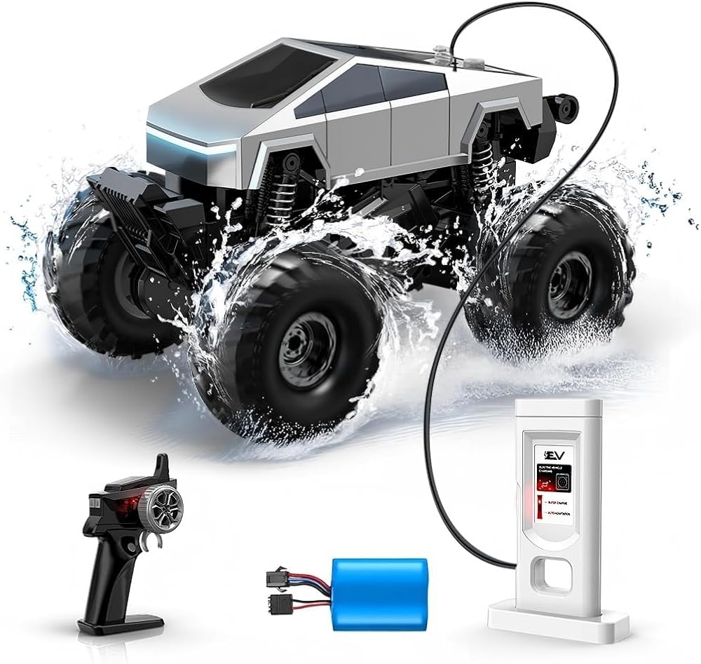 [برمائية ودفع رباعي]- تم تصميم هذه الشاحنة الوحشية الصالحة لجميع التضاريس للعب على الأرض والمياه. يتكيف مع الرمال والعشب والثلج والحصى بفضل محرك عزم الدوران العالي رباعي الدفع. يسمح التصميم المحكم المقاوم للماء بالانزلاق بسلاسة عبر حمامات السباحة والشواطئ الضحلة والبحيرات، مما يوفر متعة مضاعفة مع القدرات البرمائية.