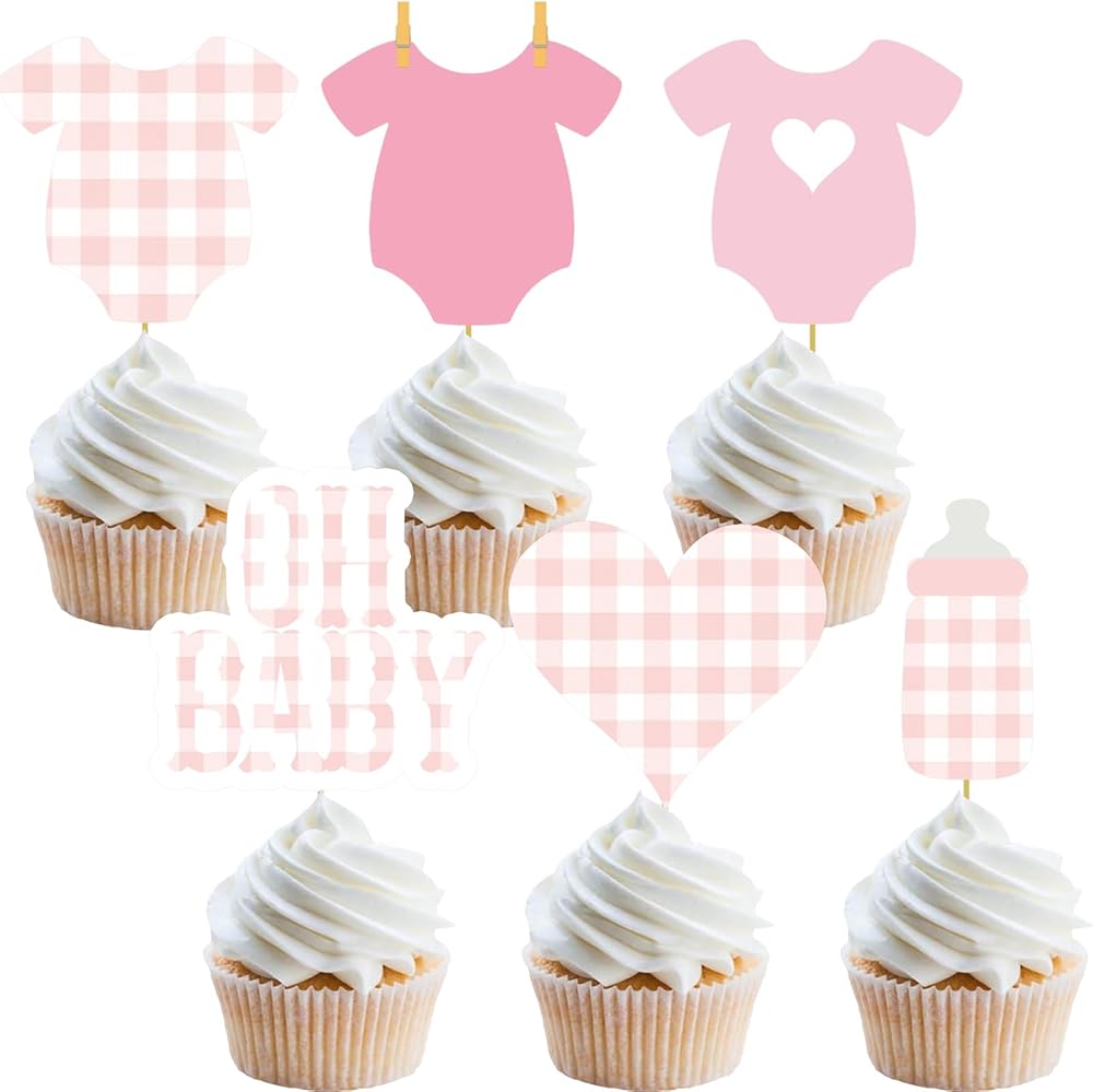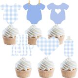 Each order comes with 36 pcs gingham theme baby shoewr gender reveal cupcake toppers