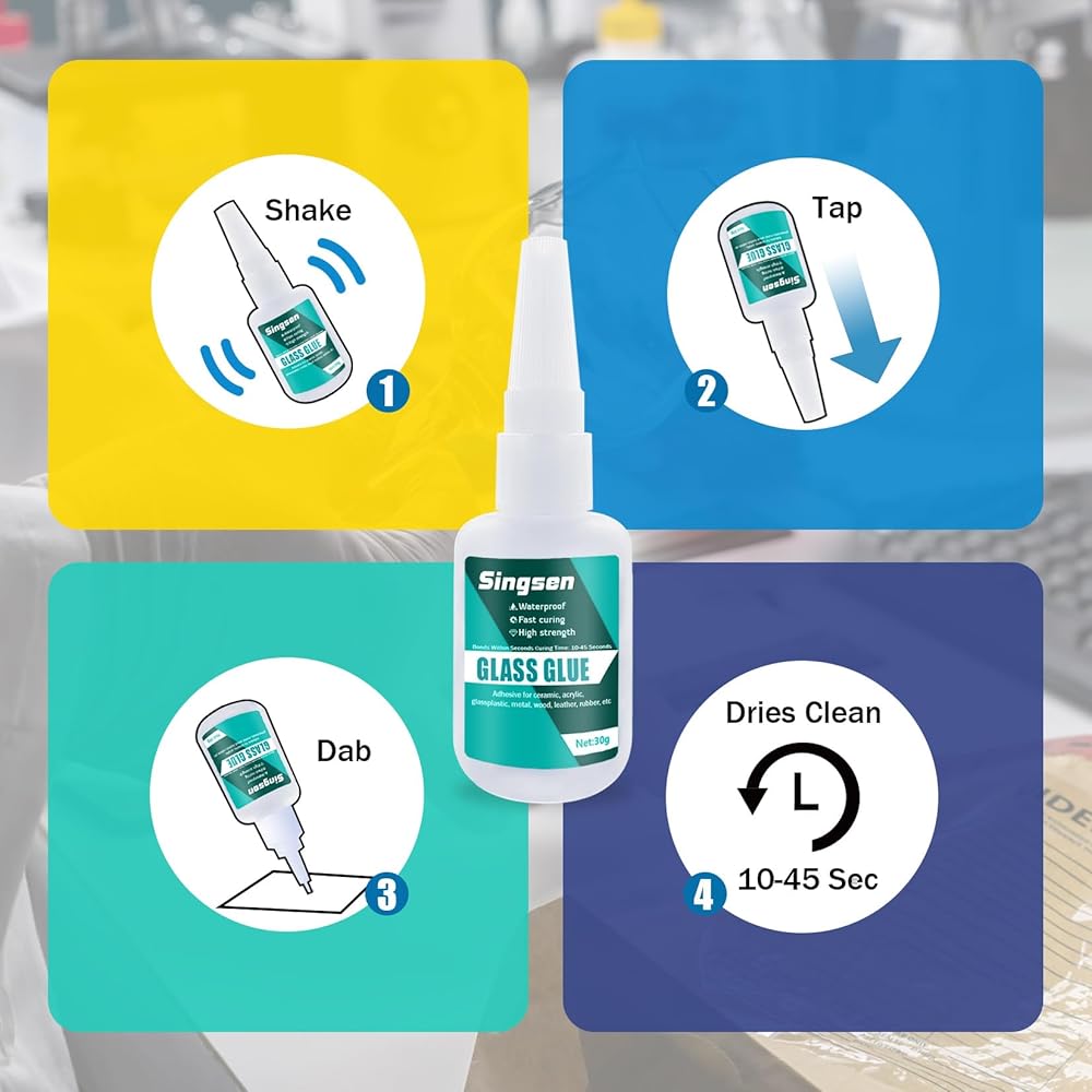 • أداء فائق: تم تصميم هذا الصمغ خصيصًا لإصلاح الزجاج المكسور، ويوفر هذا الصمغ الزجاجي الفائق الحل الأمثل للزجاج. يستخدم غراء فائق الوضوح متطور للالتصاق بشكل دائم بالمواد الزجاجية لإجراء إصلاحات غير مرئية سلسة وقوية للغاية.