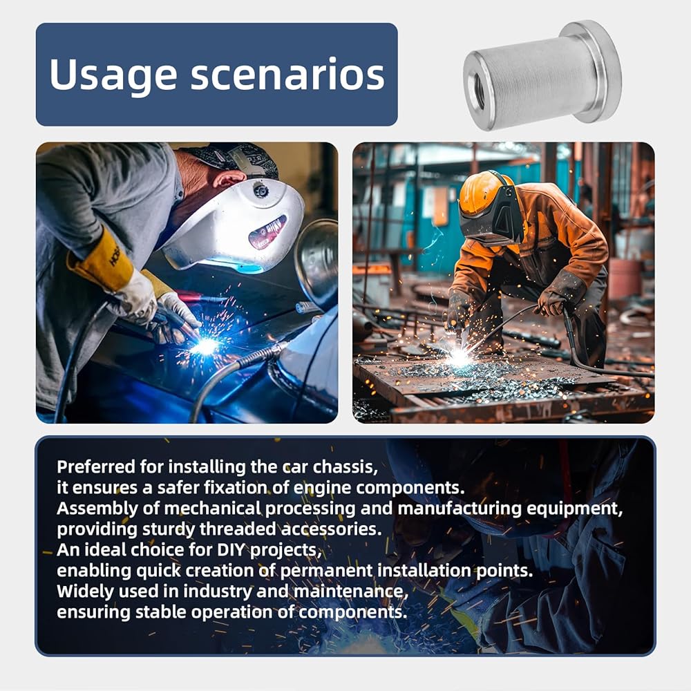 【Widely Applied】Suitable for projects in the automotive, mechanical, and general manufacturing fields. These welded nuts provide long-lasting support for engine compartments, transmission systems, and equipment assembly.