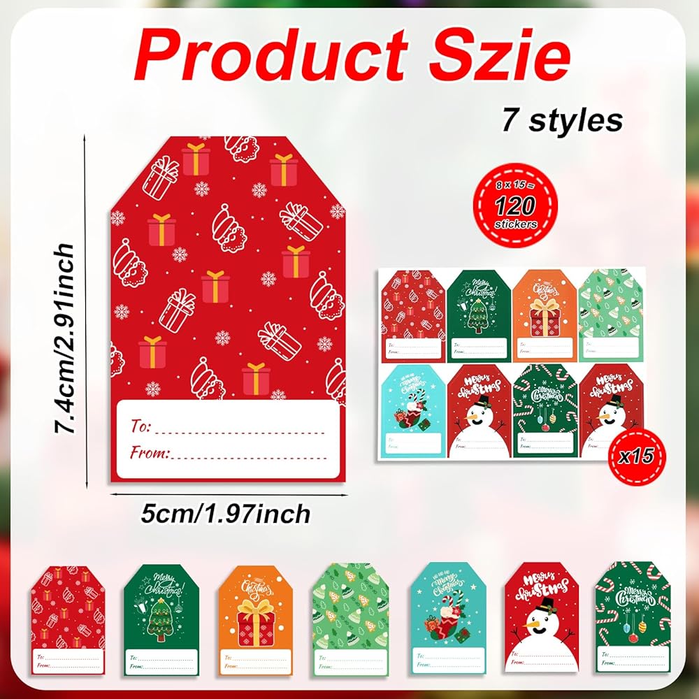 Package Content: You will receive 120 pieces of gift tags for christmas in the package, 7 styles in total. Sufficient quantity and styles can meet your gifting needs and uses.