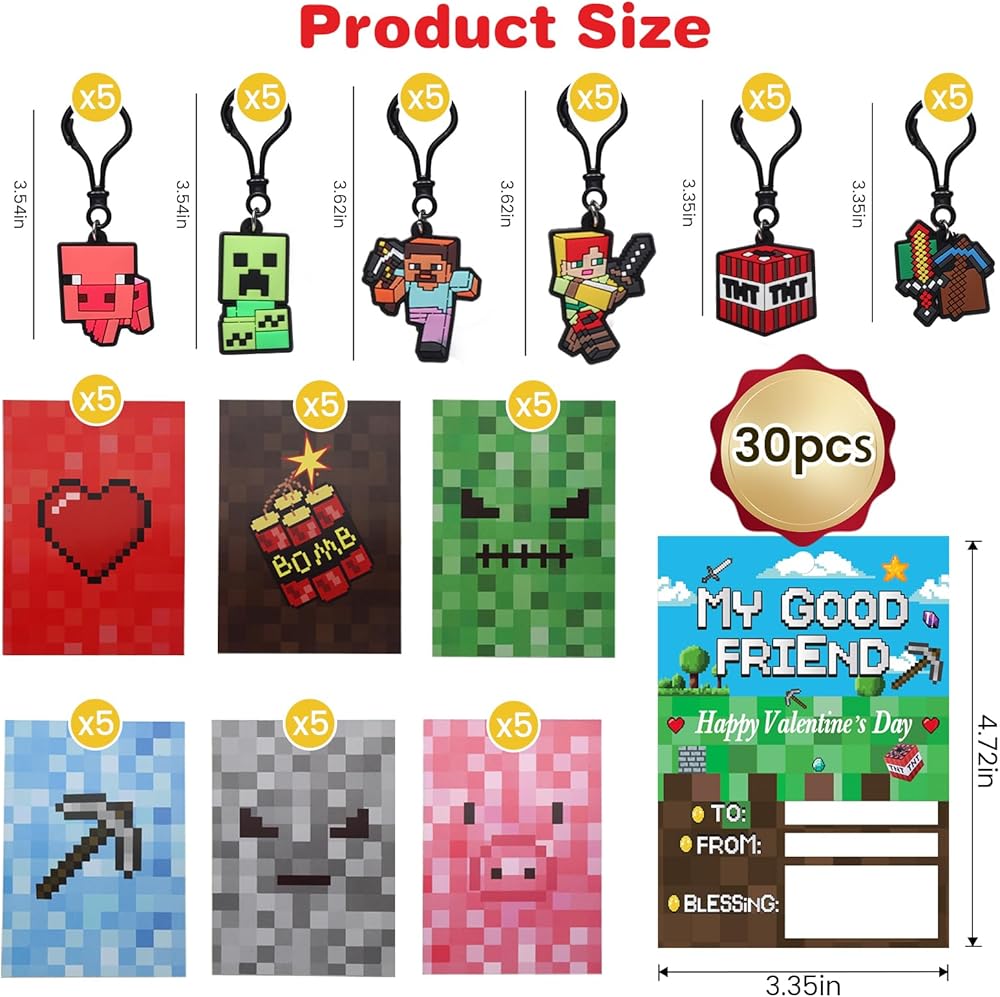 30 عبوة من بطاقات عيد الحب للأطفال مع سلاسل المفاتيح، بطاقات هدايا تبادل عيد الحب مع 30 لعبة سلسلة مفاتيح رائعة لهدايا الحفلات المدرسية في الفصل الدراسي، هدايا عيد الحب للأولاد والبنات