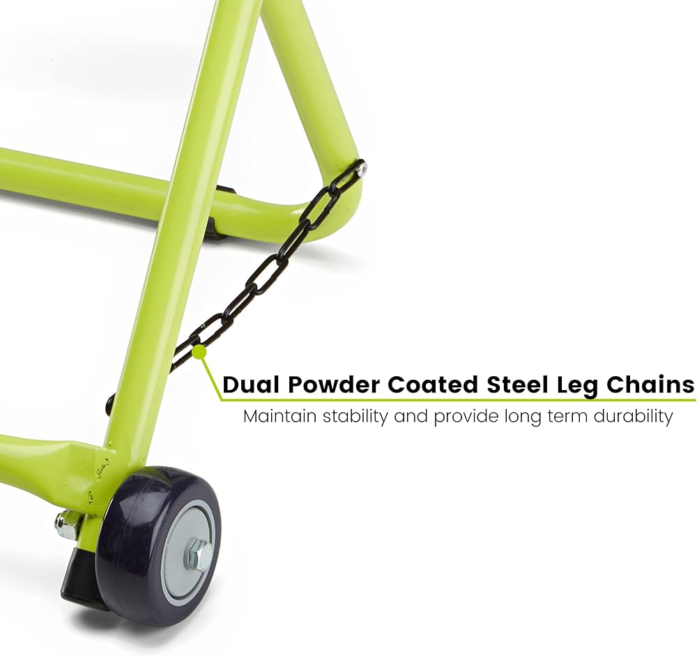 جودة فائقة. أكثر من ضعف سعة الوزن للتصميمات المنافسة، تم اختبارها حتى 220 باوند (100 كغم). قضيب مركزي من الستيل الصلب المطلي السميك. إطار فولاذي أنبوبي مقاوم للصدأ مطلي بالمسحوق. سلاسل أرجل فولاذية مزدوجة مطلية بمسحوق تحافظ على الثبات وتوفر متانة طويلة الأمد. يبلغ الحد الأقصى لحجم البكرة 17.5 انش عرضًا × 20 انش قطرًا.