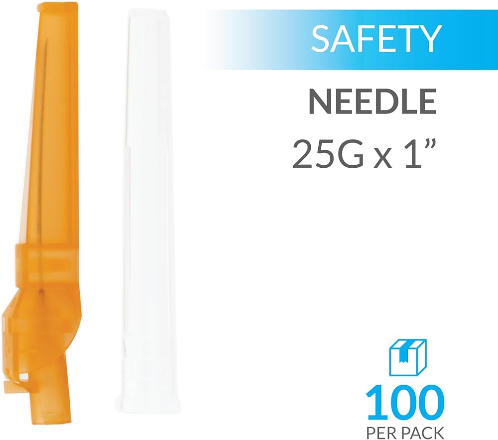 القائمة مخصصة لـ 100 قطعة من إبرة السلامة المختومة بشكل فردي مع غطاء. المواصفات: 25Ga 1 بوصة/25 مللي متر تصميم قفل luer. المكونات: الفولاذ المقاوم للصدأ مع محور بلاستيكي وواقي أمان. الاستخدام: مناسب لجميع محاقن قفل Luer القياسية، ومناسب للمختبرات العلمية والصناعة وإعادة تعبئة السائل وغراء CA والأحبار والماشية والحيوانات الأليفة. ملحوظة: هذا المنتج ليس منتجًا طبيًا ولا يمكن استخدامه للأغراض الطبية. يرجى وضع المنتج على مكان مرتفع لمنع الأطفال من لمسه. لديك أي مخاوف يرجى الاتصال بنا.