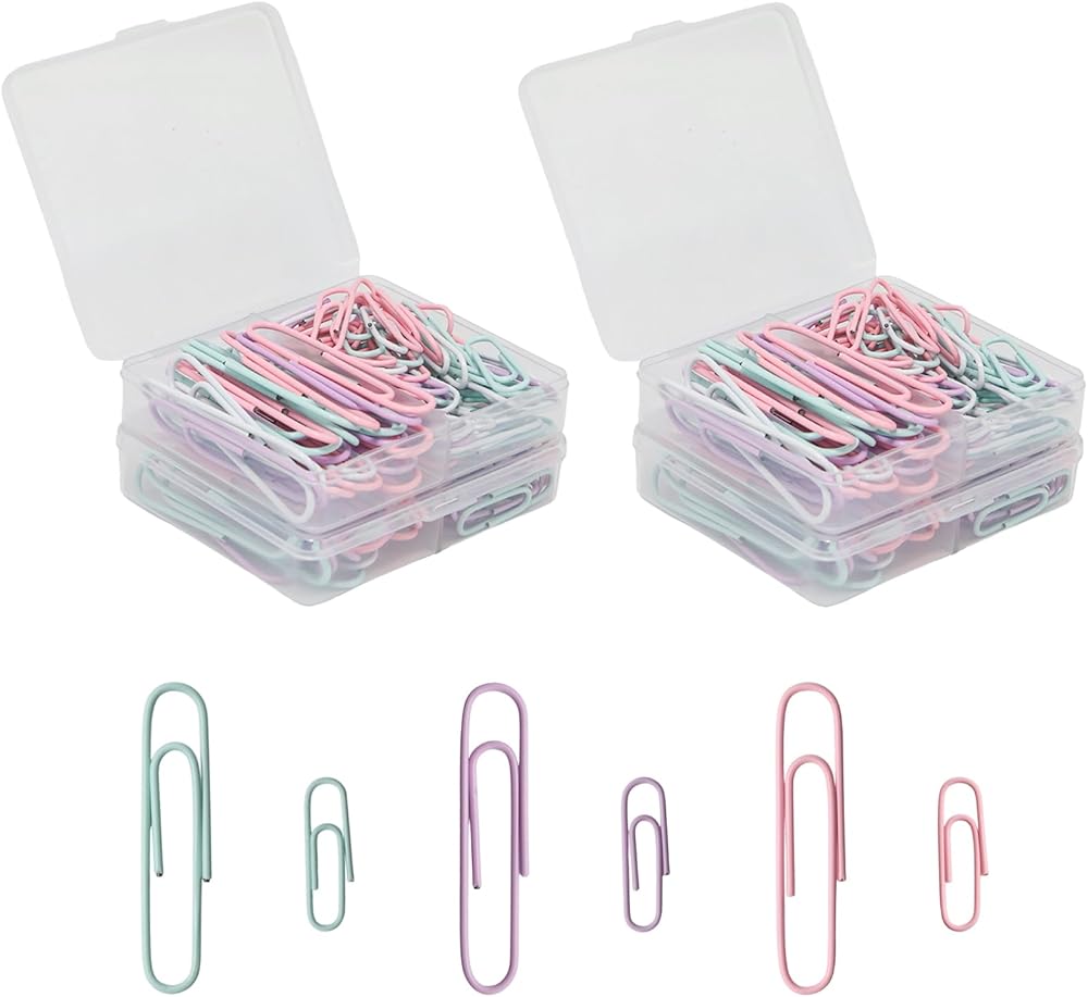 • Package Contents: A total of 280 paper clips, divided into 4 boxes, with 70 per box. Includes 50 small clips (1.1 inch) and 20 large clips (2 inch)