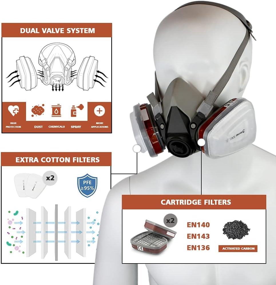 نصف قناع تنفس للغبار والمواد الكيميائية والطلاء وغيرها الكثير.