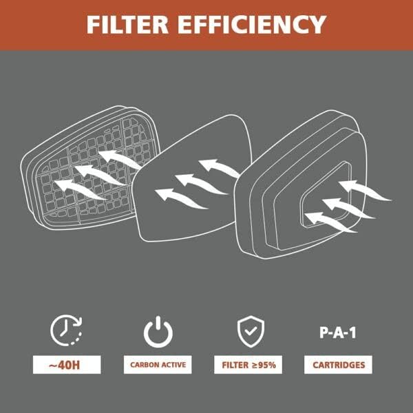 أقصى قدر من السلامة: يوفر غطاء الوجه رينو حلاً احترافيًا مع نظام فلاتر الجسيمات القادرة على حجب ما يقرب من 100% من الغازات العضوية والدخان والغبار وحبوب اللقاح والجزيئات الأخرى في الهواء. يمكن استبدال الفلاتر والخراطيش القطنية لتوفير عمر عمل طويل.