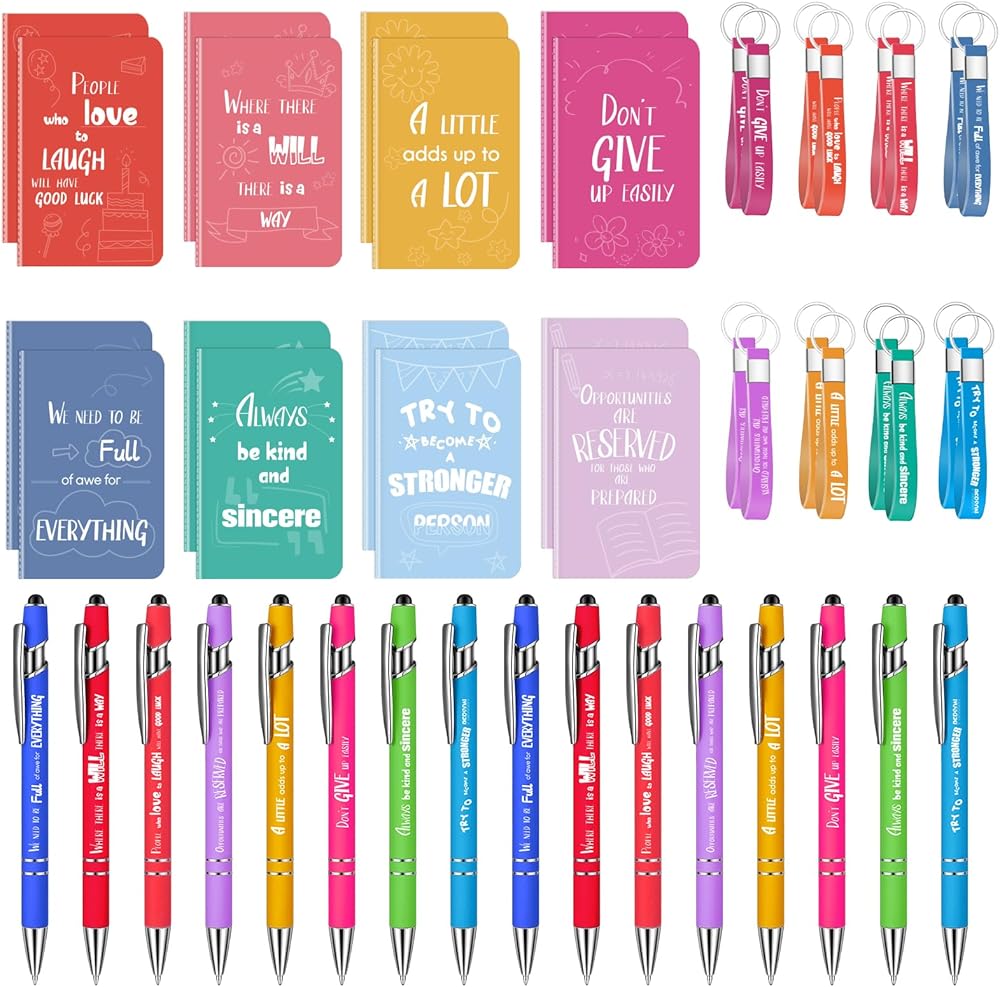 【Inspirational Quotes】These exquisite and compact motivational notebooks, pens, and keychains are printed with inspirational quotes. They contain 8 inspirational mottos, including "A little adds up to a lot" and "Don't give up easily." These motivational quotes have the power to inspire others, help boost self-confidence, and remind people to maintain a positive attitude daily, making these journals not only practical but also inspiring.