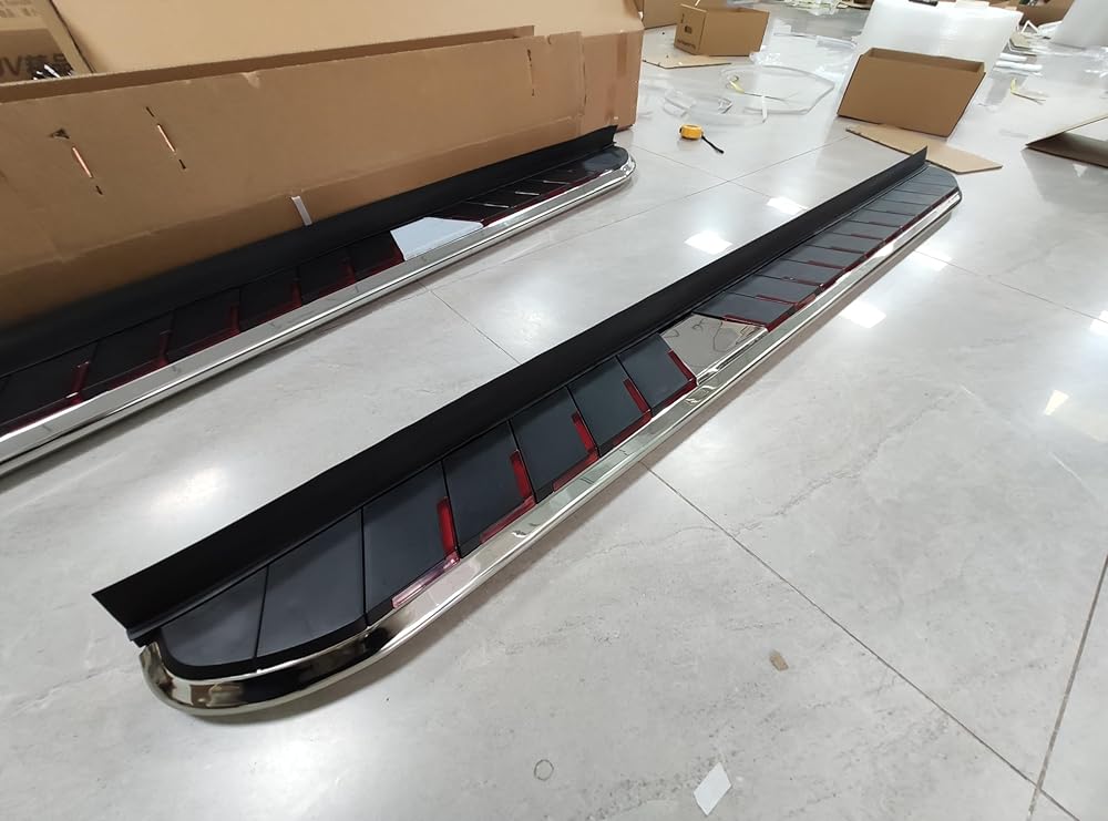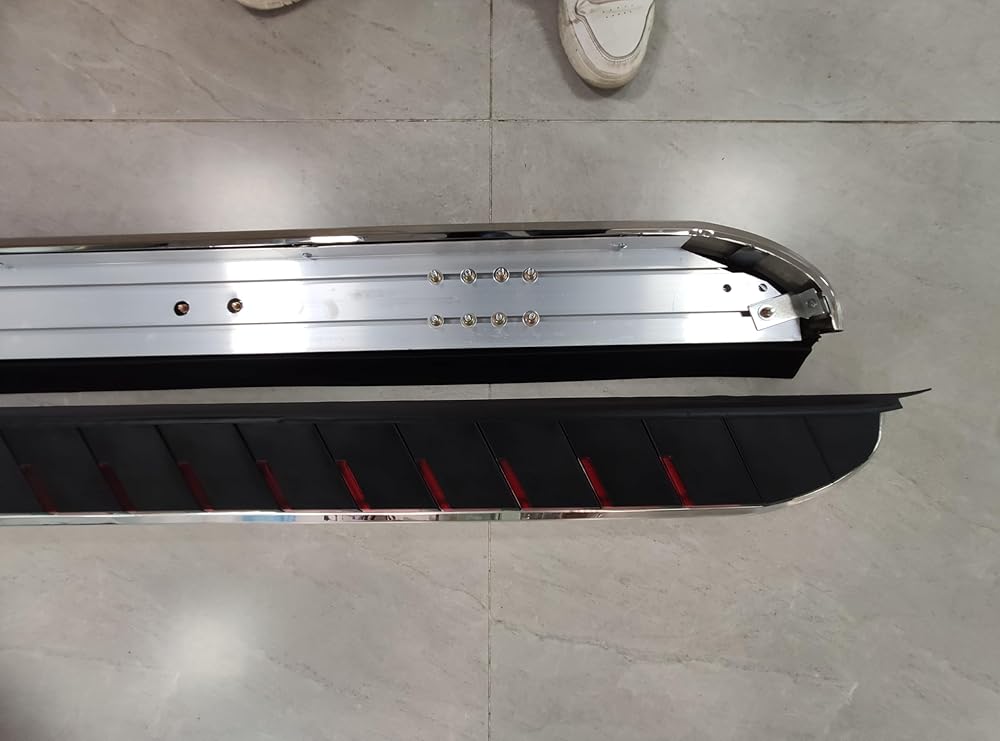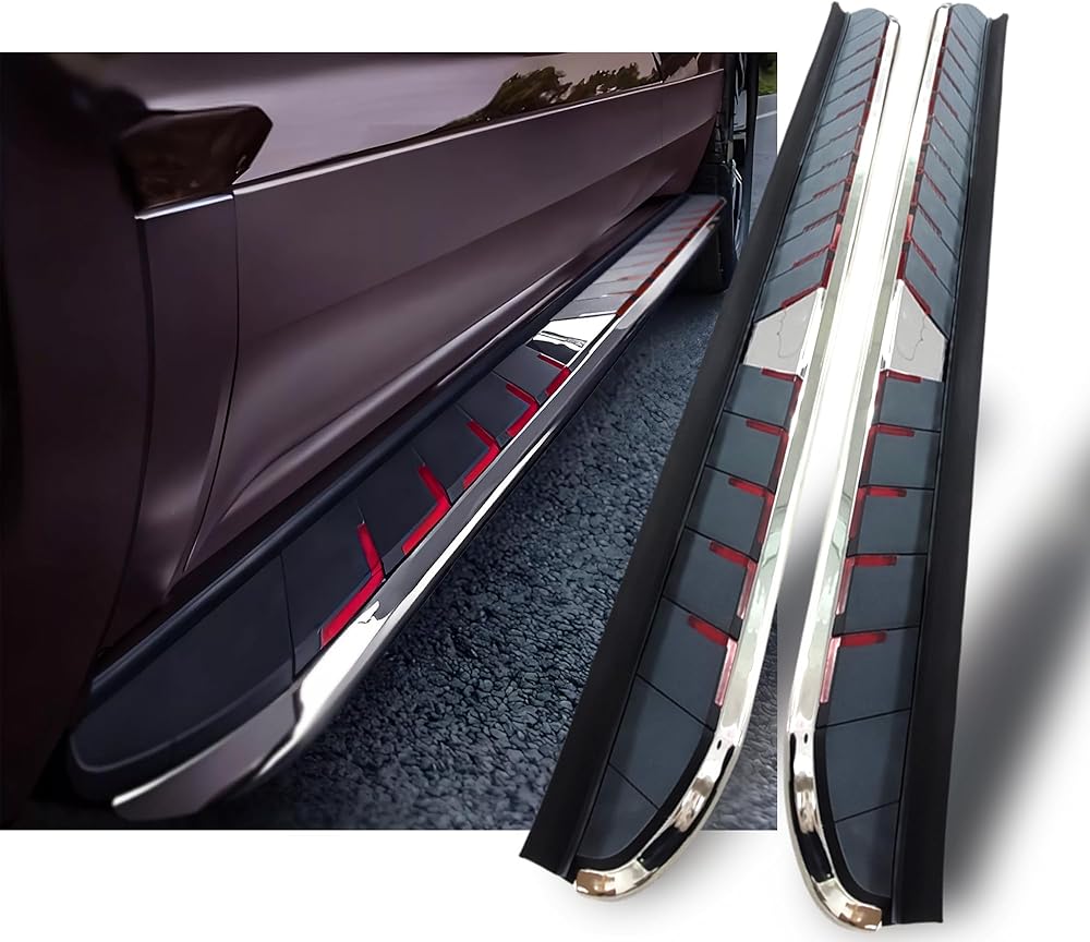 MATERIAL AND COLOR: These Running Boards, Top-Quality Aluminum Alloy + ABS Plastic.