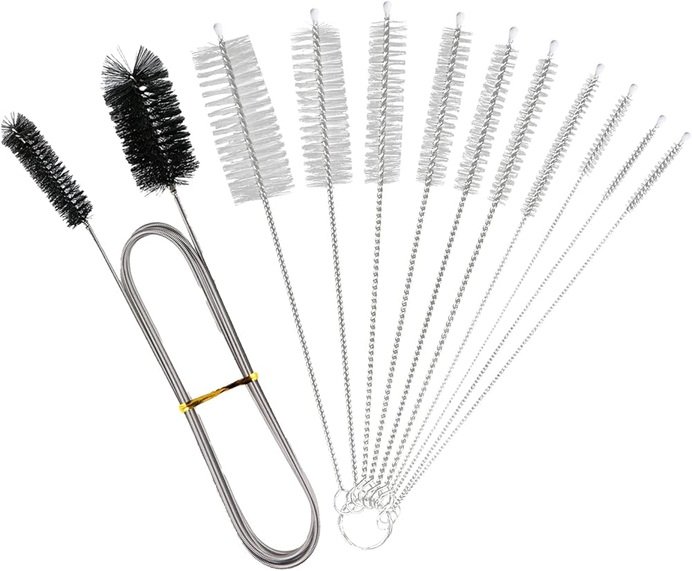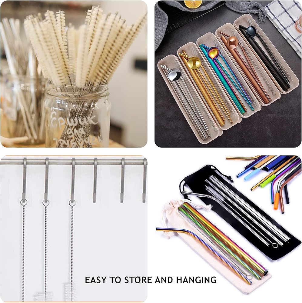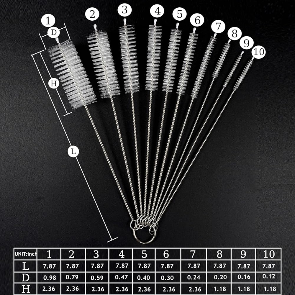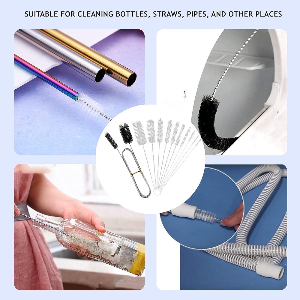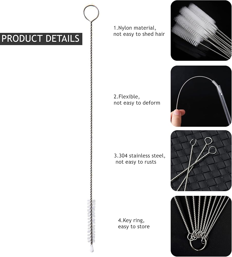 HIGH QUALITY MATERIAL- 10Pcs white straw cleaning brush tools are made of nylon bristles and firmly connected to the 304 stainless steel. The black double-head brush is made of soft nylon bristles and 304 stainless steel spring. Pipe cleaner brush will not leave a lot of fluff in the pipeline during cleaning, not easy to rust and deform. Suitable for cleaning small diameter pipes.