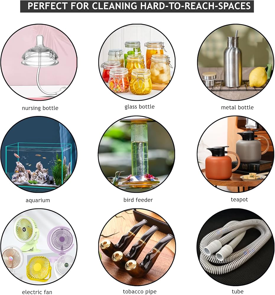 PERFECT FOR CLEANING HARD-TO-REACH-SPACES: It is widely used in straw, pipe , and all narrow-necked bottles of various materials, such as aquarium, fish tank, filter, coffee pot, sink, hummingbird feeder, Mason can, shower sink, drain pipe and other inaccessible corners. It can quickly clean dirt, save your time and energy, and make your room more clean and tidy.