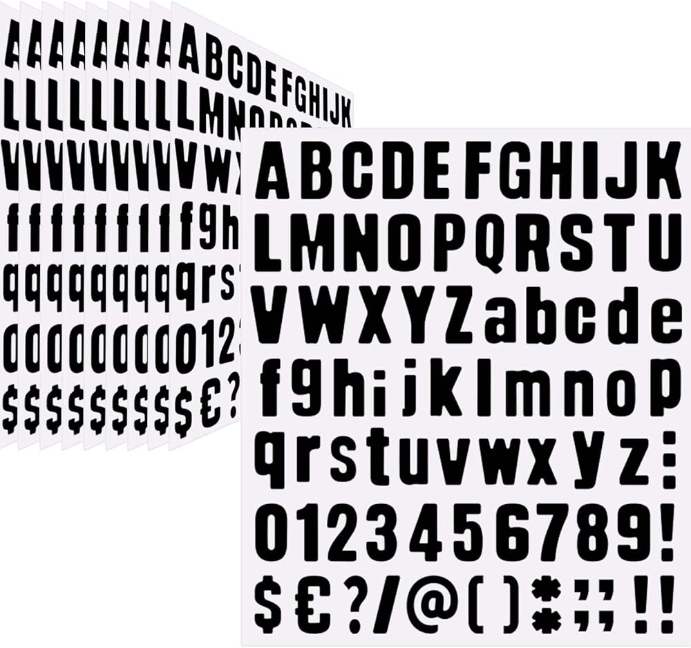 حزمة قيمة: سوف تحصل على 16 ورقة من الملصقات الأبجدية، بما في ذلك 416 حرفًا كبيرًا + 416 حرفًا صغيرًا، و160 رقمًا 0-9 و304 رمزًا شائعًا، لذلك لا داعي للقلق أبدًا بشأن نفادها في منتصف مشروعك.