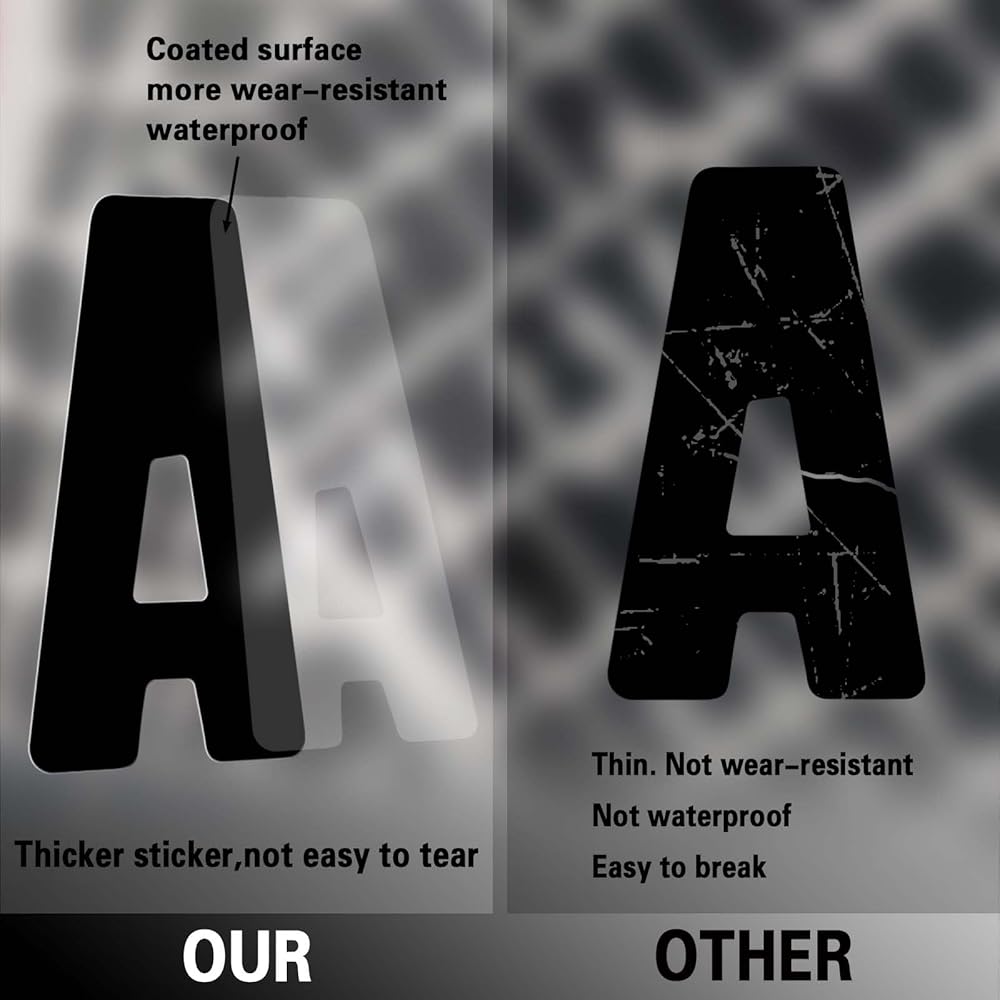 مادة عالية الجودة: ملصق الحروف الأبجدية هذا مصنوع من الفينيل المتين، ويضمن اللاصق القوي ملاءمته بإحكام، وليس من السهل كسره، ومقاوم للماء، ومناسب جدًا للاستخدام الداخلي والخارجي.