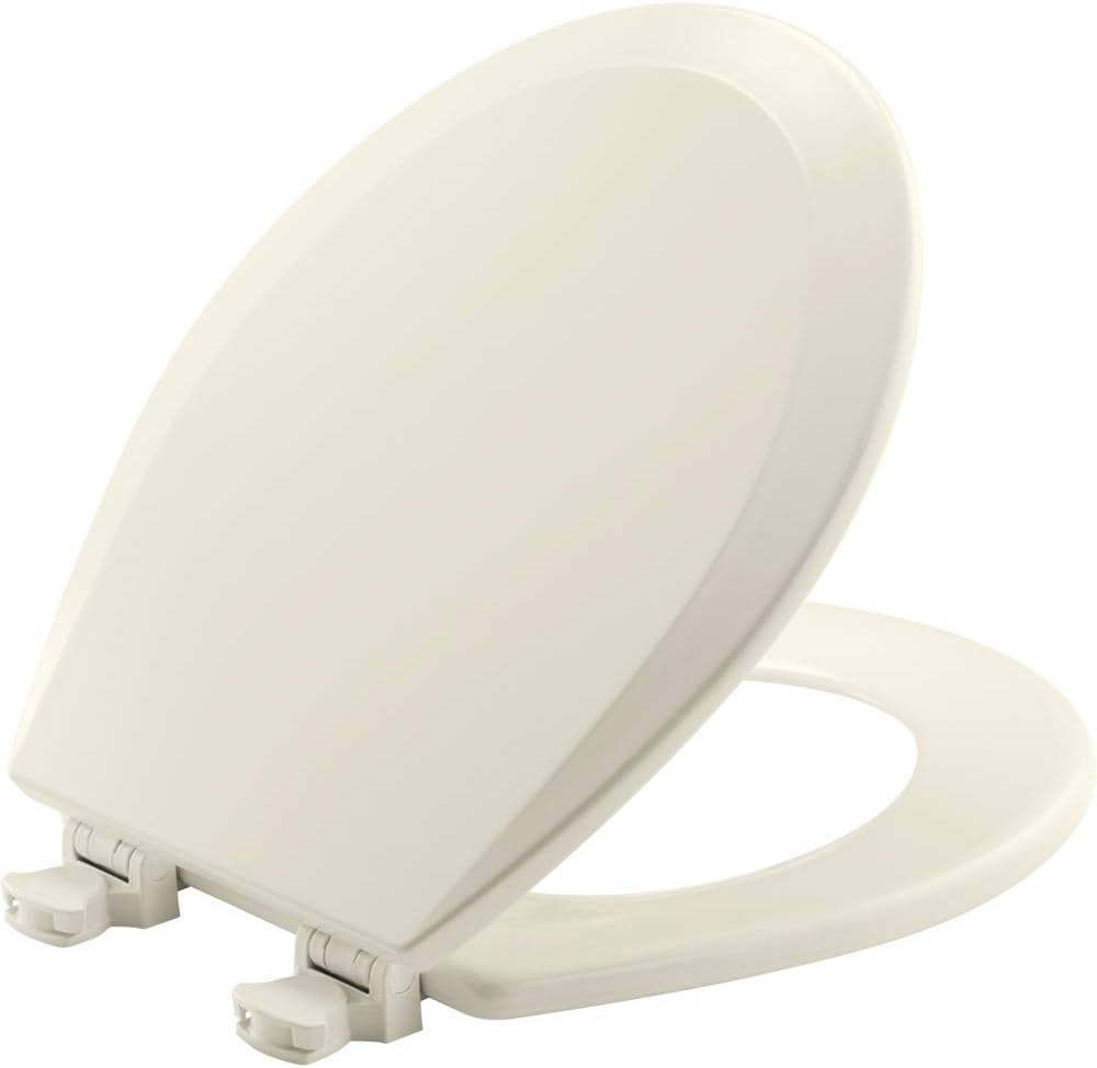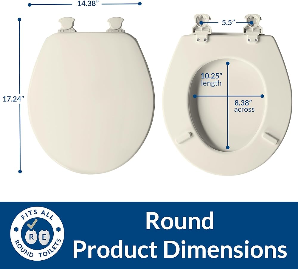 تشيرتش مقعد مرحاض 540EC 346 مع مفصلات سهلة التنظيف والتغيير، مستدير، خشب متين مطلي بالمينا، بسكويت/كتان
