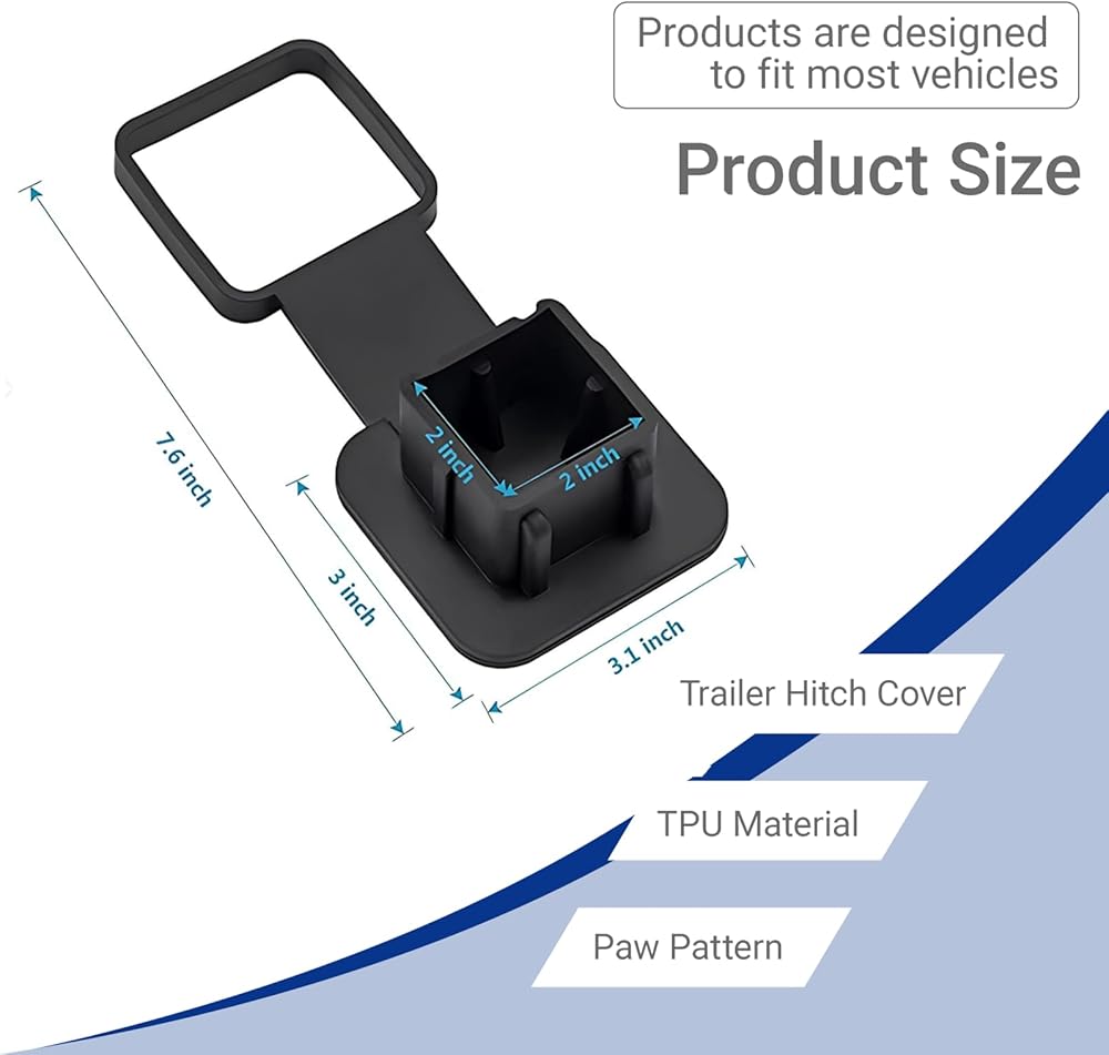 Universal 2”x2” Size for Most Vehicles: You'll get 1 dog paw trailer hitch plug (insert size 2”x2”), designed to fit most trailers, SUVs, pickups, RVs, and ATVs. To ensure a perfect fit, measure your hitch receiver first. Perfect for drivers with standard hitch setups or multiple vehicles.