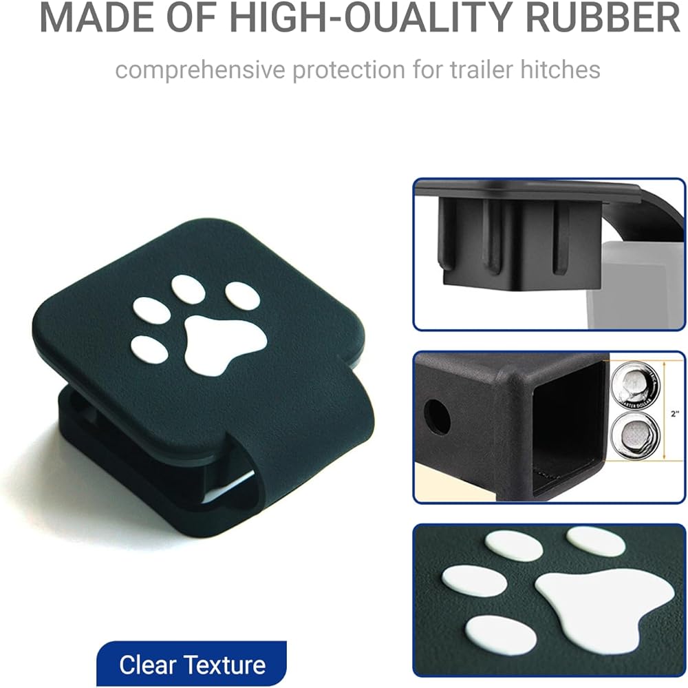 2 Inch Trailer Hitch Cover Dog Paw Rubber Plug, Dustproof Waterproof Protects Tow Hitch Square Mouth Receiver, Easy to Install Fits Most Vehicles SUV RV Pickup ATV(Buckle Type Design)