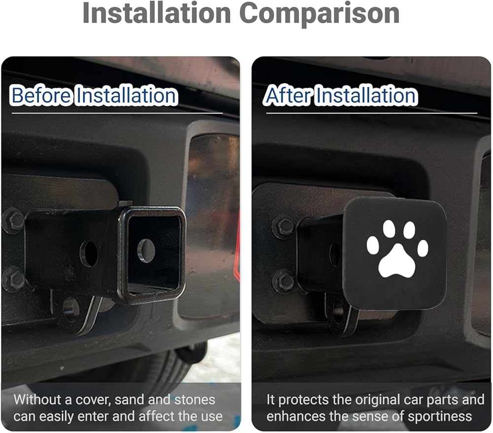 Adorable Dog Paw Design for Vehicle Decoration: This tow hitch cover features a novel dog paw pattern, far more lively than plain solid-color options. It adds unique flair to your vehicle's look, solving the problem of dull, generic hitch covers. Perfect for pet lovers looking to personalize their SUV, pickup truck, or RV