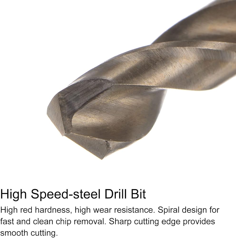 Drill Bit: Spiral chip space design for fast and clean chip removal. Sharp cutting edge provides smooth cutting and no glitches. M35 5% cobalt high speed steel tool features high hardness (HRC65-66) and high red hardness, high wear resistance.