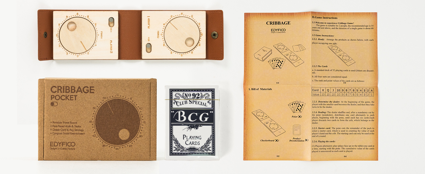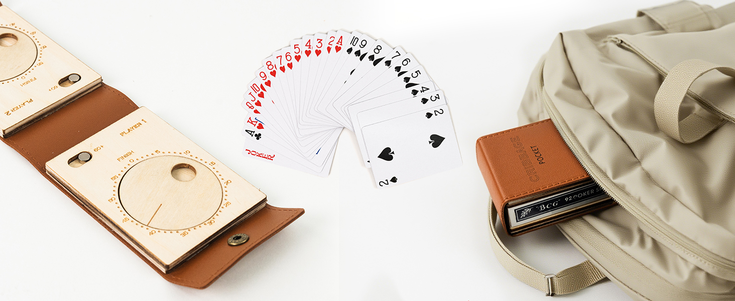 حجم لعبة لوح الكريبج - حجم مغلق 3.94 بوصة × 2.7 بوصة × 1.3 بوصة/10 × 6.8 × 3.2 سم (حوالي 2 مجموعة من البطاقات)، حجم مفتوح 8.4 بوصة × 2.7 بوصة × 0.24 بوصة/21.4 × 6.8 × 0.6 سم، صغير بما يكفي ليكون محمولاً وخفيف الوزن ولكنه كبير بما يكفي ليكون مقروءًا وكبيرًا في اليد