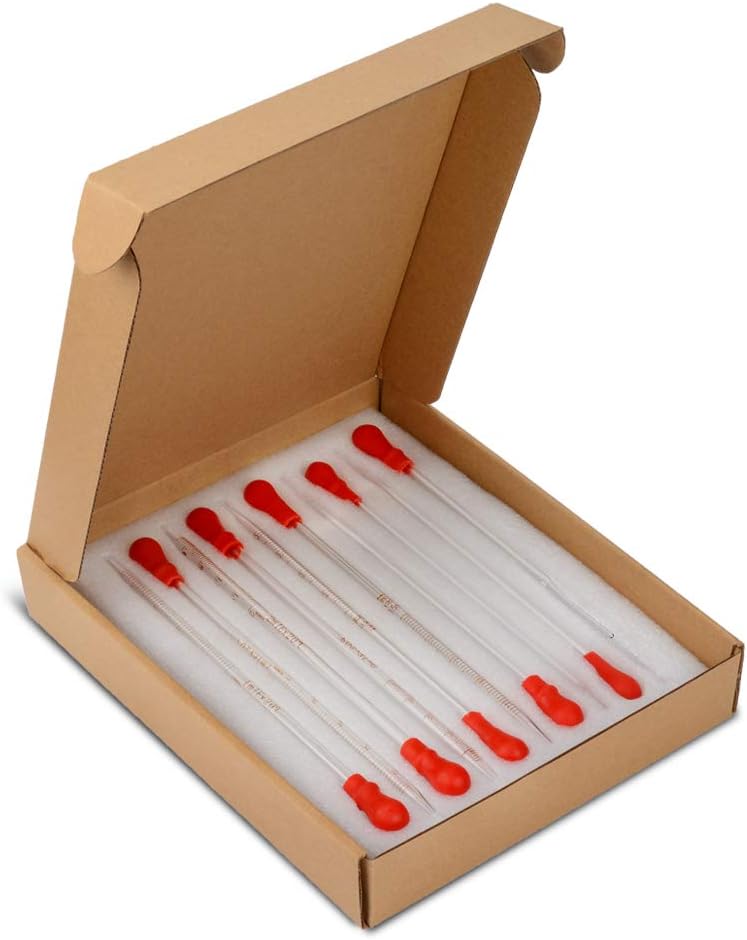 مجموعة ماصات قطارة زجاجية من StonyLab، مجموعة ماصات سميكة من زجاج البورسليكات لنقل السائل مع أغطية مطاطية حمراء للمختبر، مجموعة من 10 (متدرجة 0.5 مل، 1 مل، 2 مل، غير متدرجة 1 مل، 3 مل)