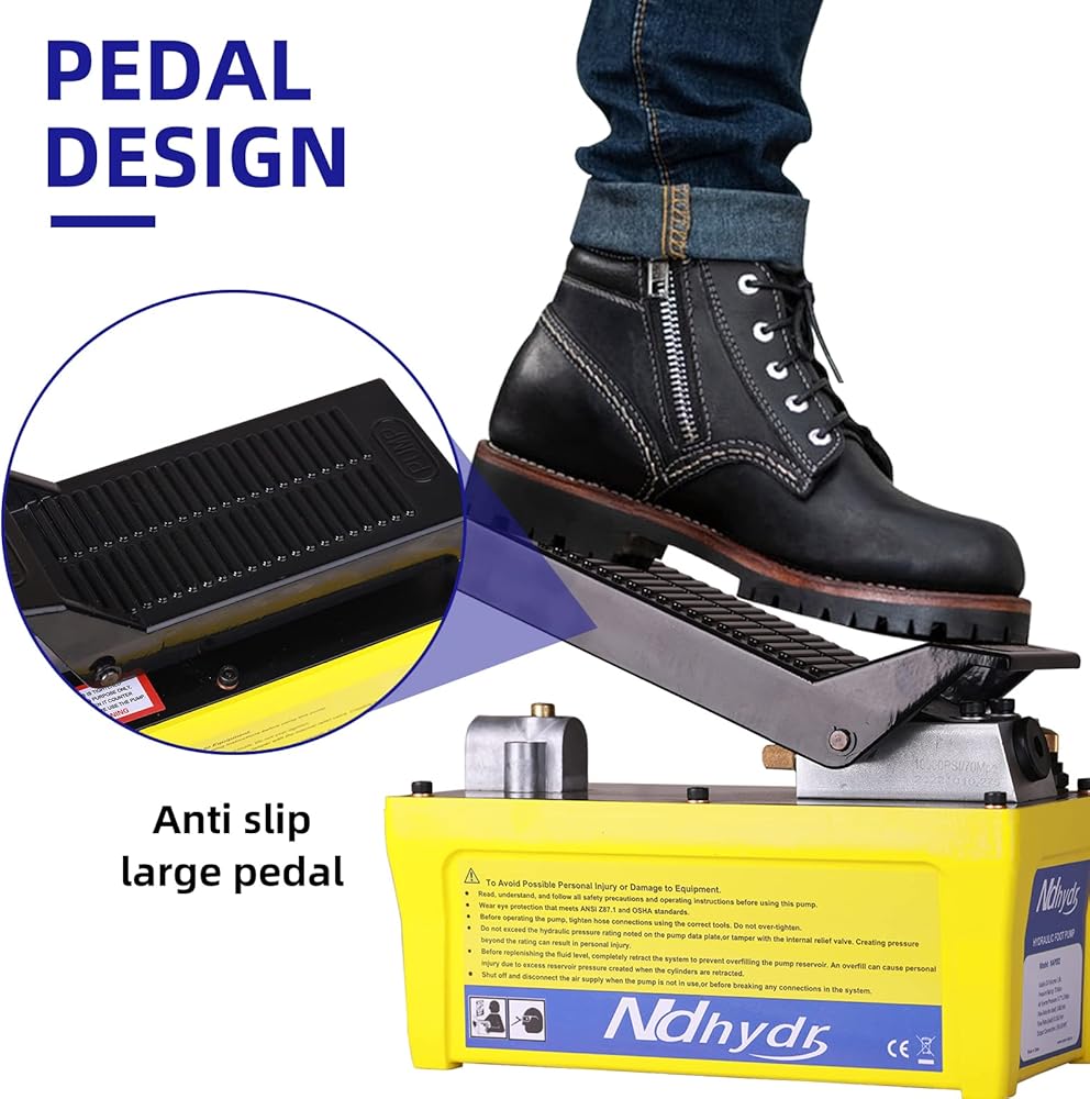 سهلة التشغيل، اضغط على الدواسة لأسفل للسماح للمضخة بالعمل، والتوقف عن الضغط على الدواسة سيتوقف ويحتفظ بالضغط، ورفع الدواسة سيحرر الضغط.