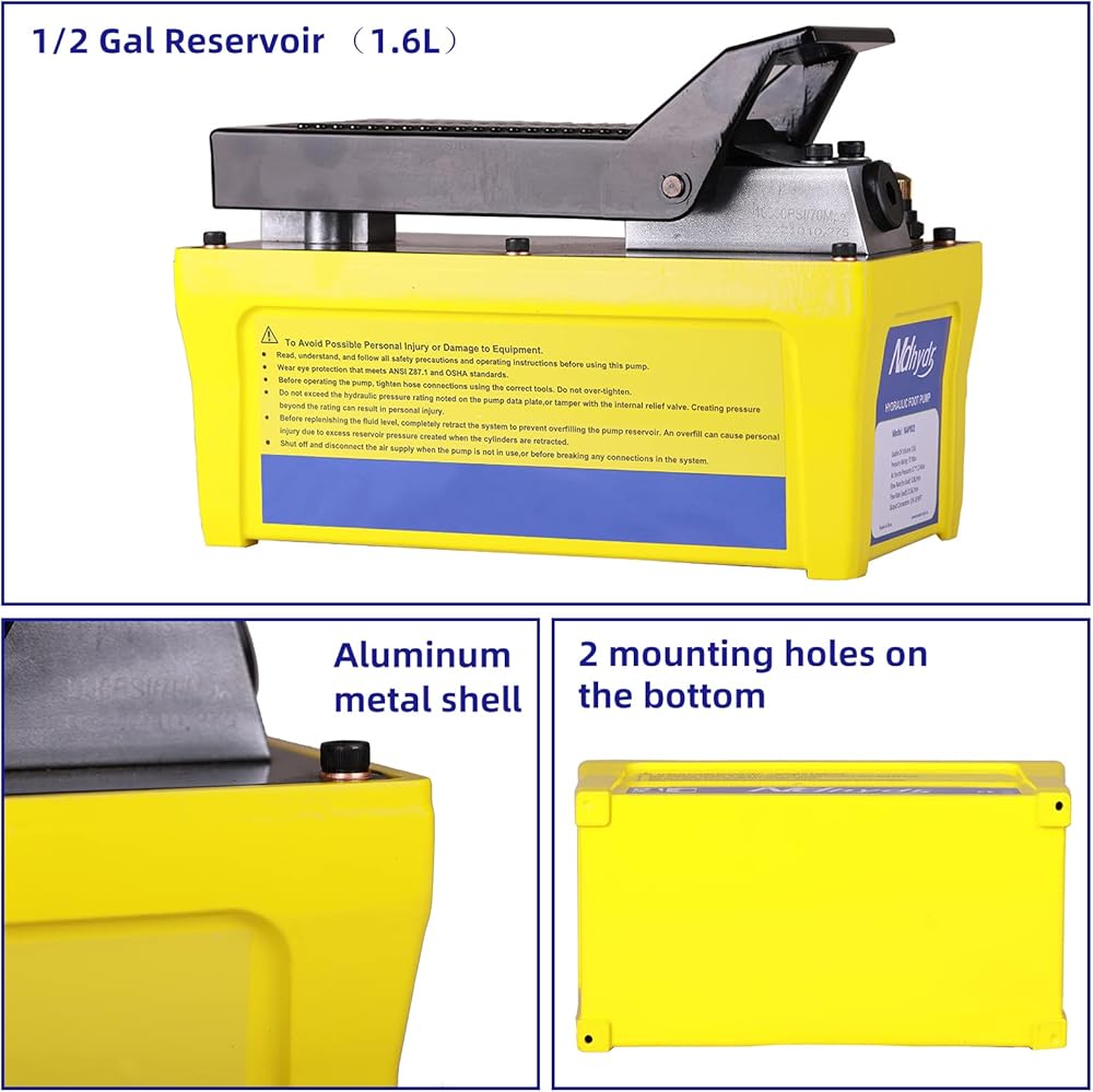 مضخة هيدروليكية للهواء NDhydr 10,000 رطل لكل بوصة مربعة مضخة قدم هيدروليكية للهواء 1/2 جالون مضخة هيدروليكية تعمل بخزان الهواء للكباش والمكابس وآلات إطار الجسم التلقائي والرفع الهيدروليكي.