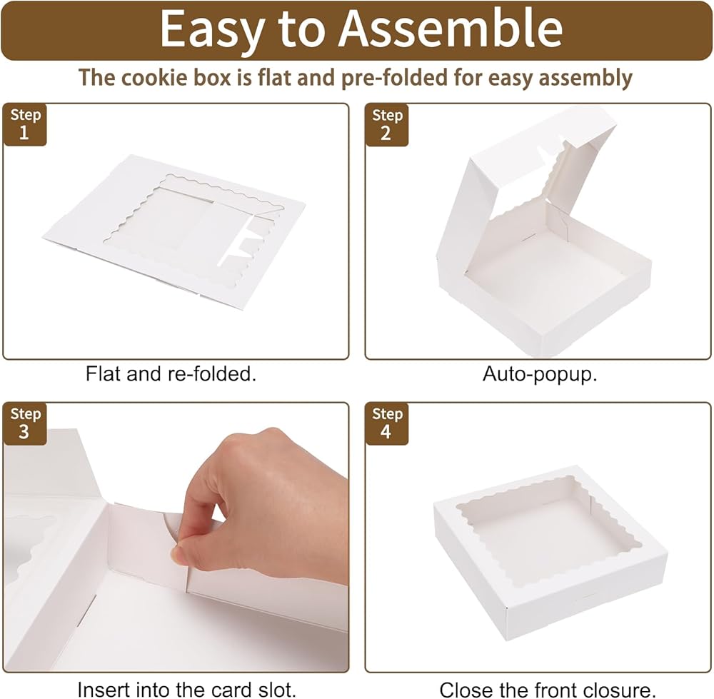 • Package contains: 50 bakery boxes with windows, which can fully meet your needs for family gatherings and holiday parties. Friends who like baking can also use these as gift boxes for customers, friends and family.