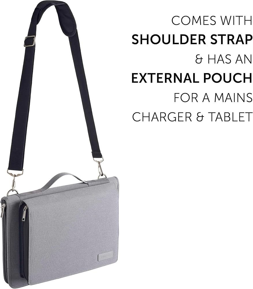 Side Pocket for Charger, Tablet, Pens and other accessories. Removable Shoulder Strap