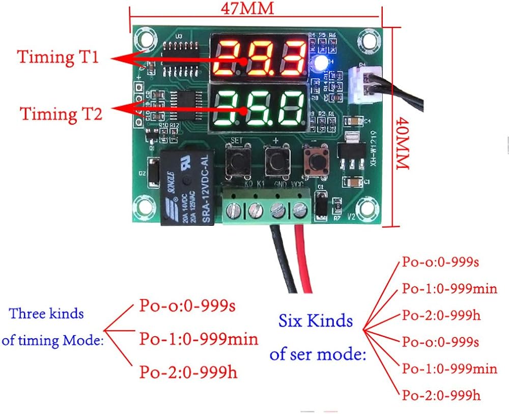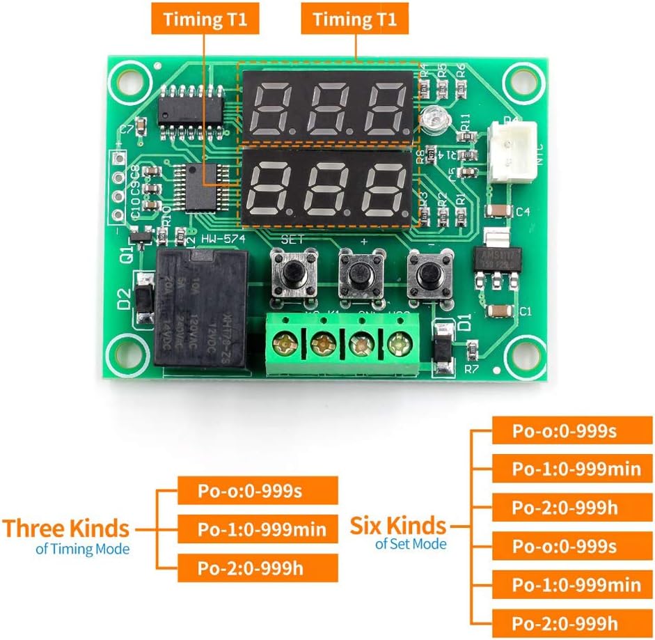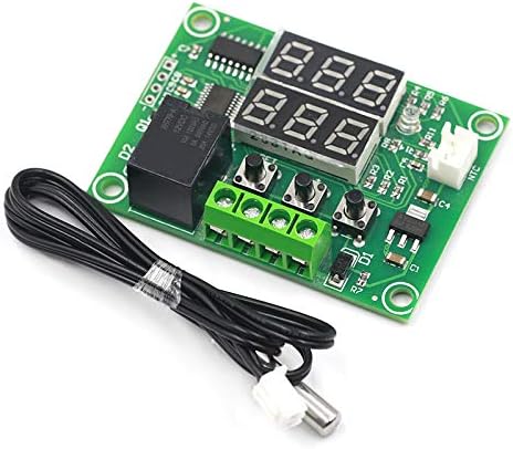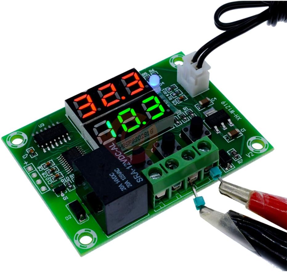 هاي ليتجو وحدة تحكم في درجة الحرارة W1219 W1219 بتيار مستمر 12 فولت وشاشة رقمية LED مزدوجة للتحكم في درجة الحرارة ومنظم الجهد وتأخير الوقت مع مستشعر درجة حرارة ان تي سي 10K