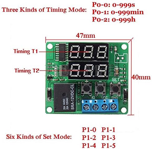 3. مجموعة أزرار الضغط لفترة طويلة: إذا بدأت وضع إعداد المعلمات. هناك معلمتان للمجموعة لتختار منها: P0 وP1. يمكنك تبديل P0 أو P1 بالضغط لفترة قصيرة. تحت المعلمة P0 وP1، يمكنك ضبط وضع التوقيت بواسطة الزر + والزر-.