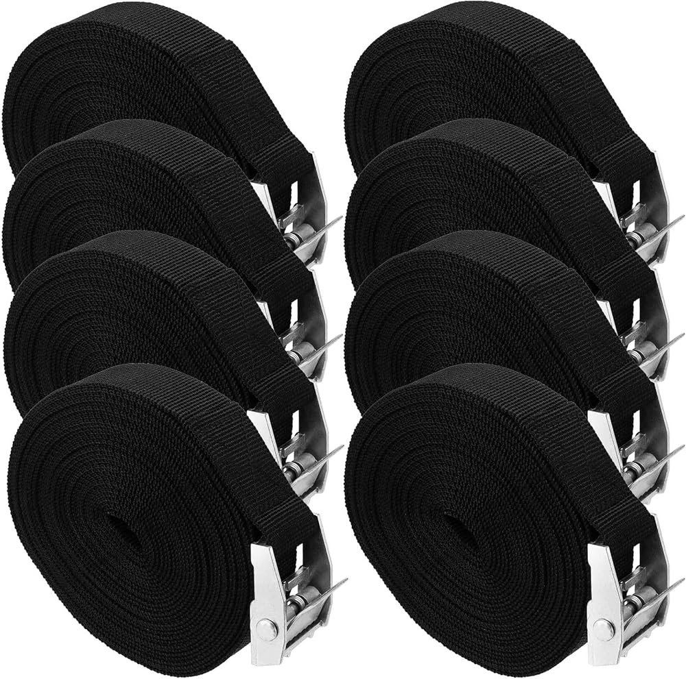 مجموعة احزمة تثبيت من سوجاب، 16 قطعة مع ابزيم كاياك، احزمة شديدة التحمل لسقف البضائع والشاحنات والمقطورة والامتعة والدراجات النارية وشنطة الحمل، مع خليط معدني من الزنك (اسود)