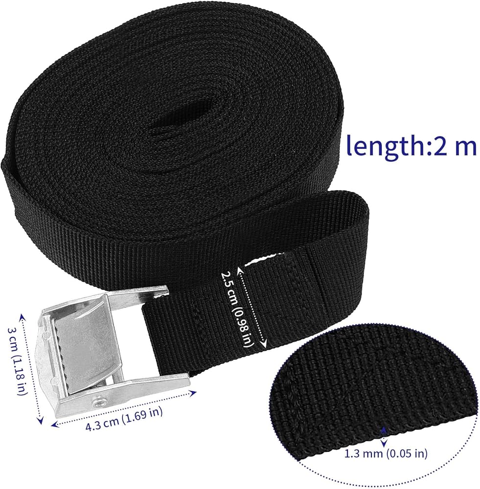 الأبعاد - يمكنك الحصول على 16 قطعة من أحزمة الرموش شديدة التحمل بطول 2 متر. يبلغ عرضه 1 انش وسمكه 1.3 ملم. يبلغ الحمل حوالي 100 باوند وقوة الكسر حوالي 300 باوند. يمكنها ربط أغراضك بسرعة دون أن تنكسر بسهولة.