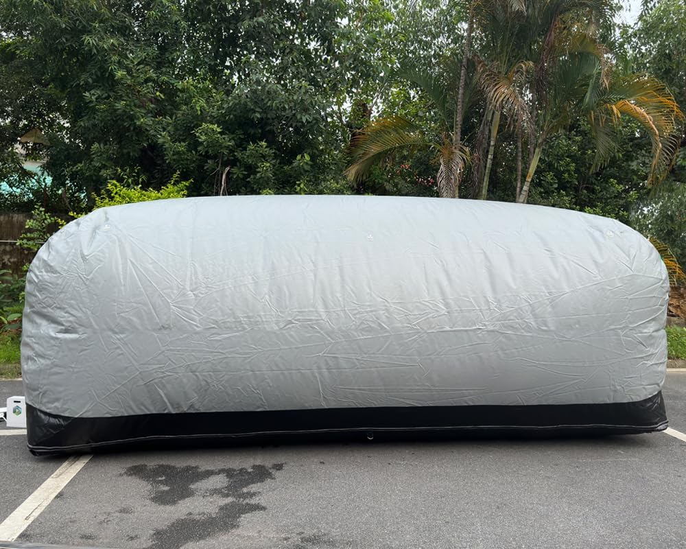 Besides keeping the air dry, what other functions does it have? The bubble is made of durable 10mm double-layer polished PVC with RF welding seams, protecting your vehicle from bad weather such as rain, hail and falling debris, as well as scratches, dents, rodents and other threats to your vehicle.