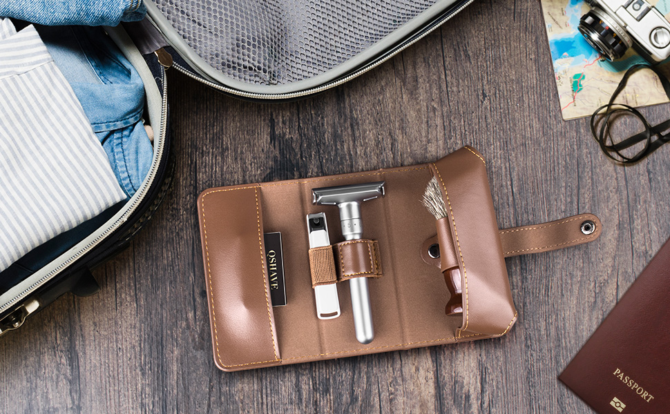 تعد هدية رائعة: حافظة QSHAVE الواقية من جلد البقر، والتي توفر ماكينة الحلاقة الآمنة الخاصة بك في كل موقع، ستكون هدية ممتازة للأصدقاء والعائلة والأحباء. رائعة لتدليل زوجك، أو هدية مدروسة في عيد الأب، هذه الحافظة مصممة لتدوم طويلاً وستكون هدية مثالية تدوم طويلاً.