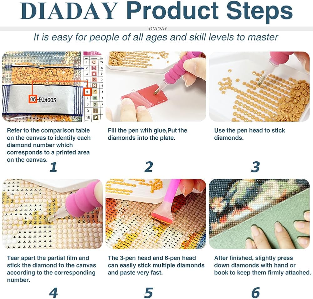 رعاية عملاء DIADAY: نحن نقدر كل مجموعة من أحجار الراين الكريستالية 5D وتجربة الرسم الماسي الخاصة بك. في حالة ظهور أي مشكلة مع مجموعة الماس الخاصة بك، فإننا لن ندخر أي جهد