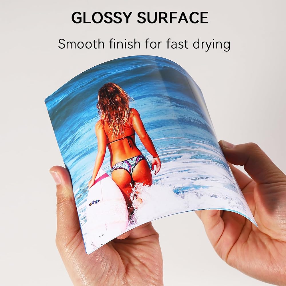 Vibrant Glossy Finish for Photo-Quality Stickers:Delivers brilliant color reproduction and sharp detail on the high-gloss surface. Ideal for turning your favorite photos into durable, peel-and-stick memories that maintain their professional appearance.