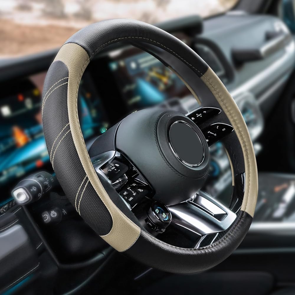 Material: Our car steering wheel covers are made of carbon fiber leather and synthetic fibers, with double-thread sewing reinforcement. They are anti-slip, wear-resistant, and have good breathability. They are not prone to loosening or deformation even after long-term use