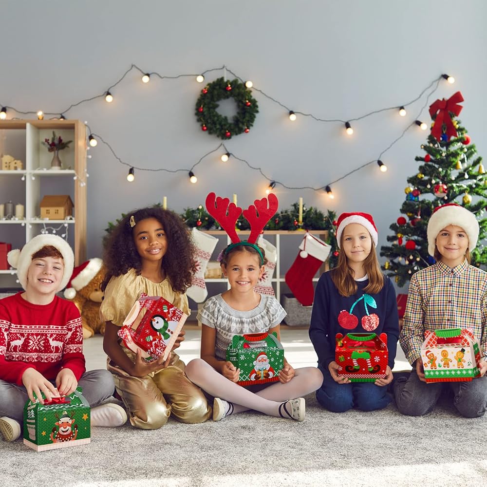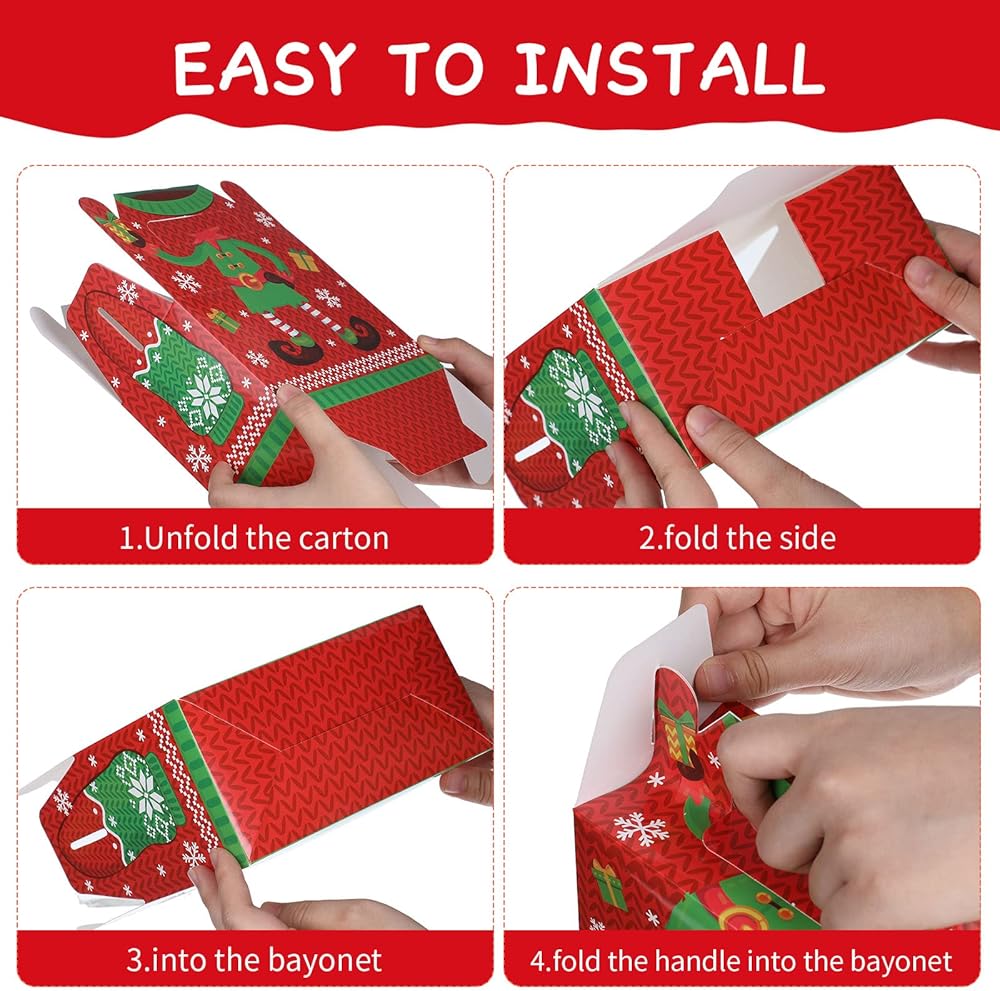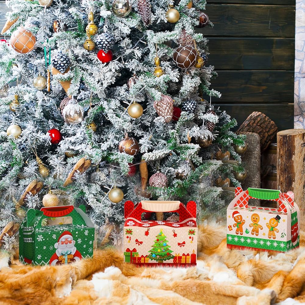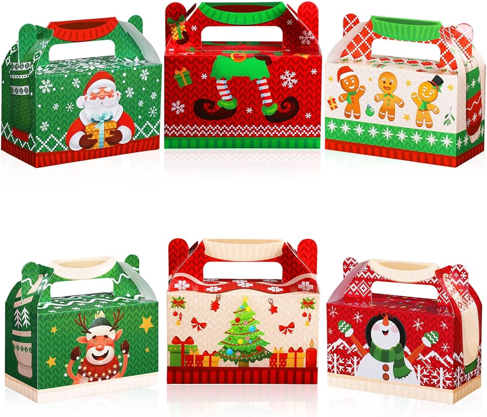 مادة موثوقة: علب هدايا Santa Xmas Goody Gable مصنوعة من ورق مقوى عالي الجودة، قوي ومتين، ومتين بما يكفي لحمل جميع أنواع الهدايا، ولن ينكسر أو يتمزق بسهولة، ويمكن إعادة استخدامه لفترة طويلة.
