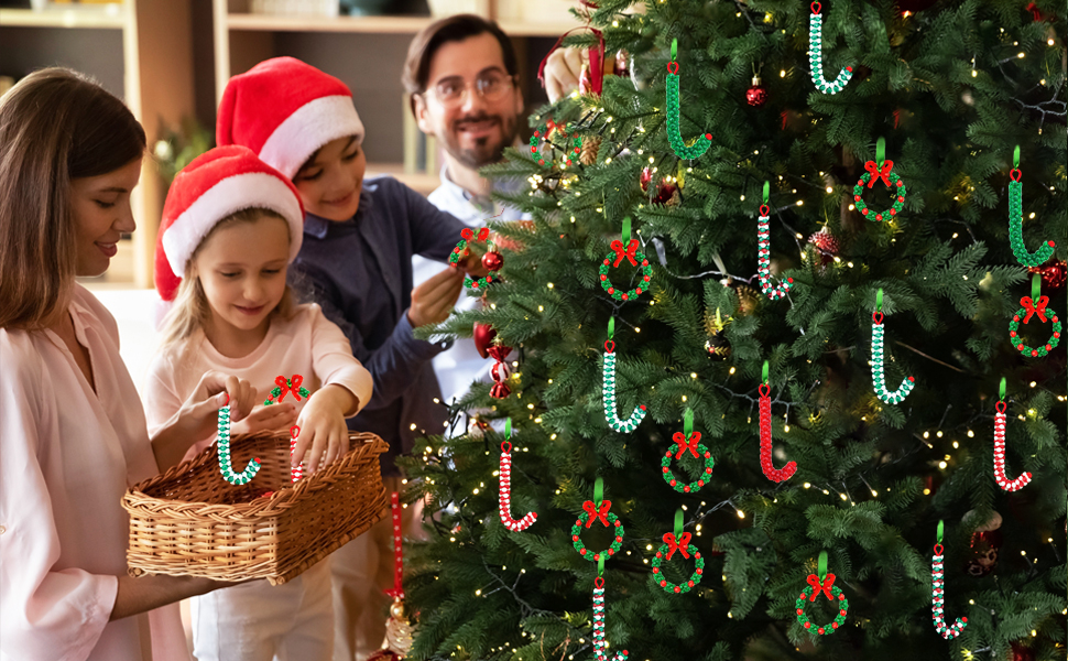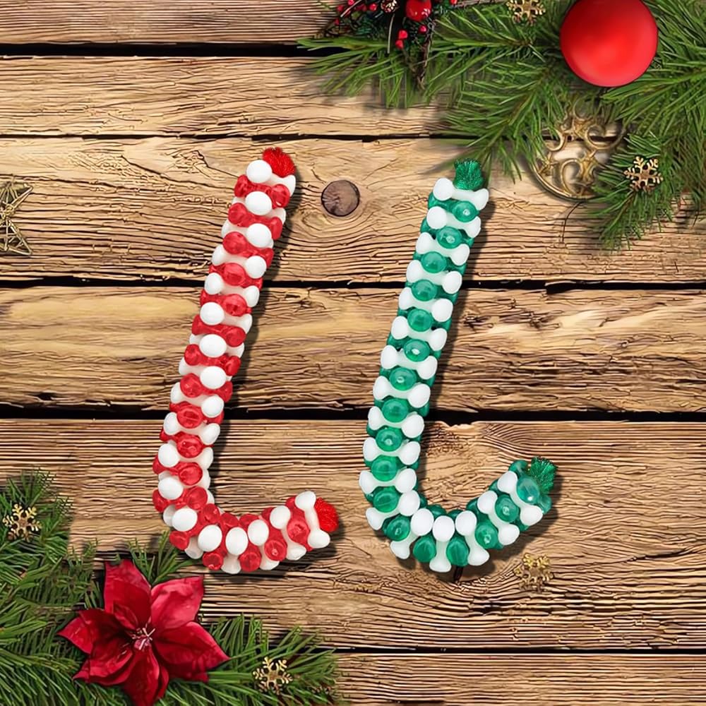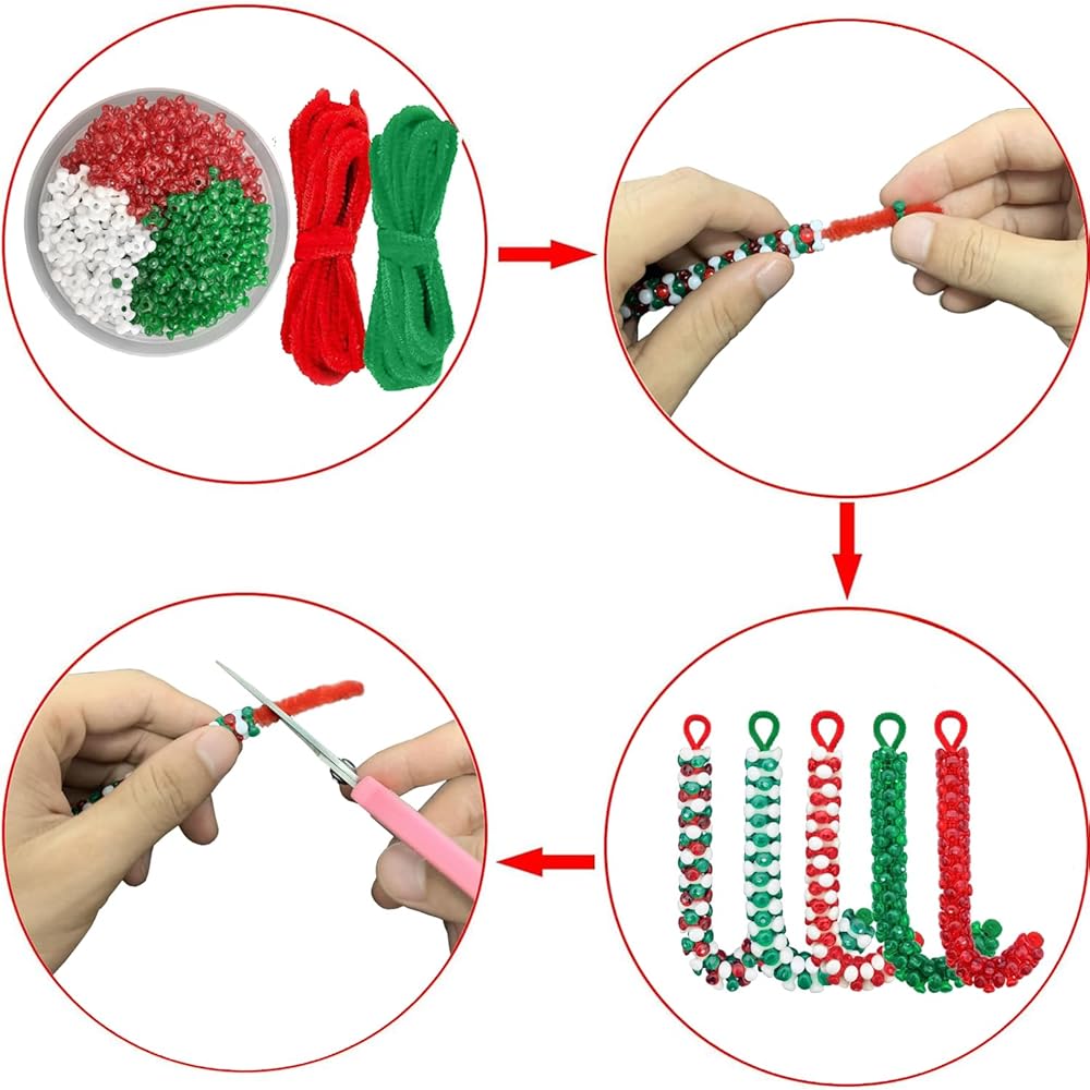 [سهل الاستخدام بنفسك]: تحتاج فقط إلى استخدام سلك شانيل أحمر أو أخضر وثنيه بالشكل الذي تريده. اختر خرزات عيد الميلاد التي تفضلها وقم بربطها، ويمكنك الحصول على الشكل الذي تريده. أخيرًا، يمكنك قص خيط الشنيل الأحمر الزائد أو يمكنك الاستمرار في إضافة الخرز لصنع حرفة عيد الميلاد أكبر.